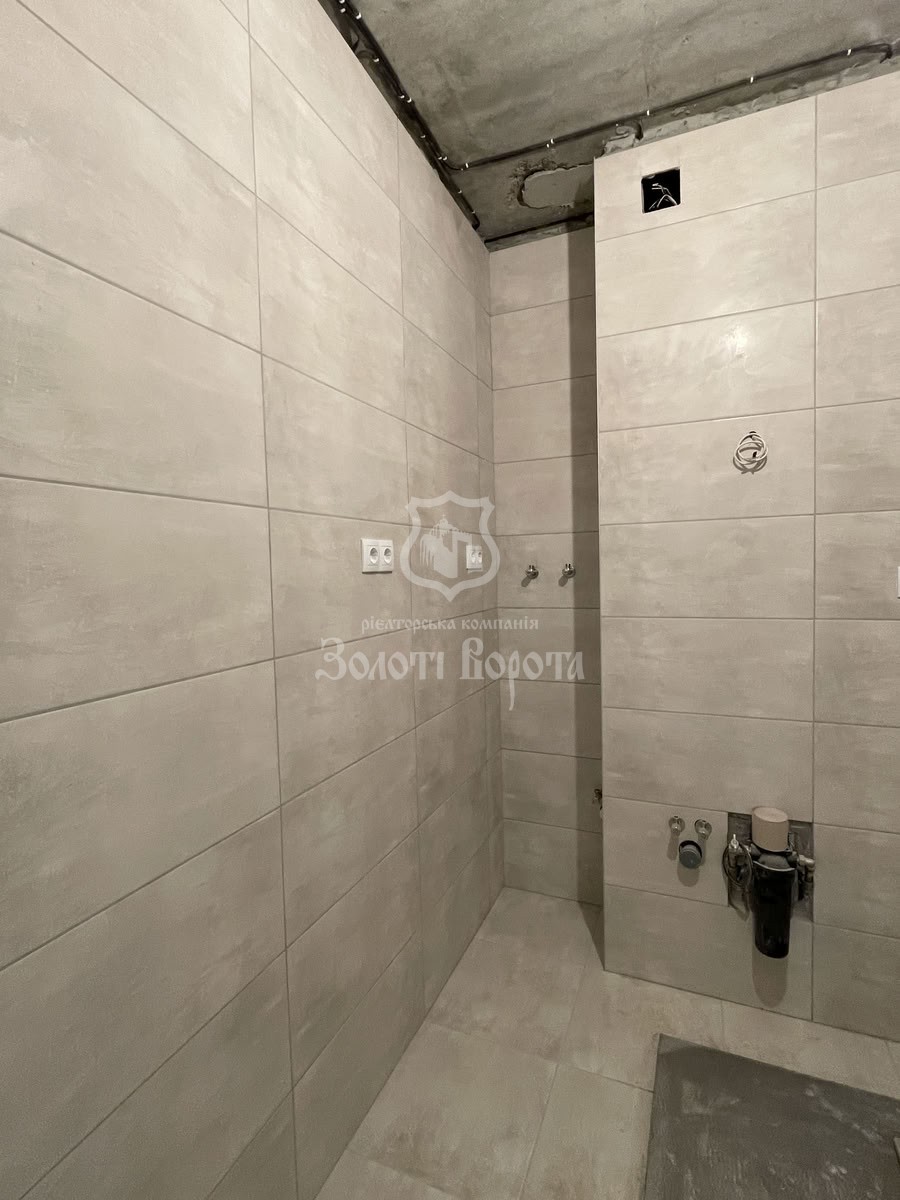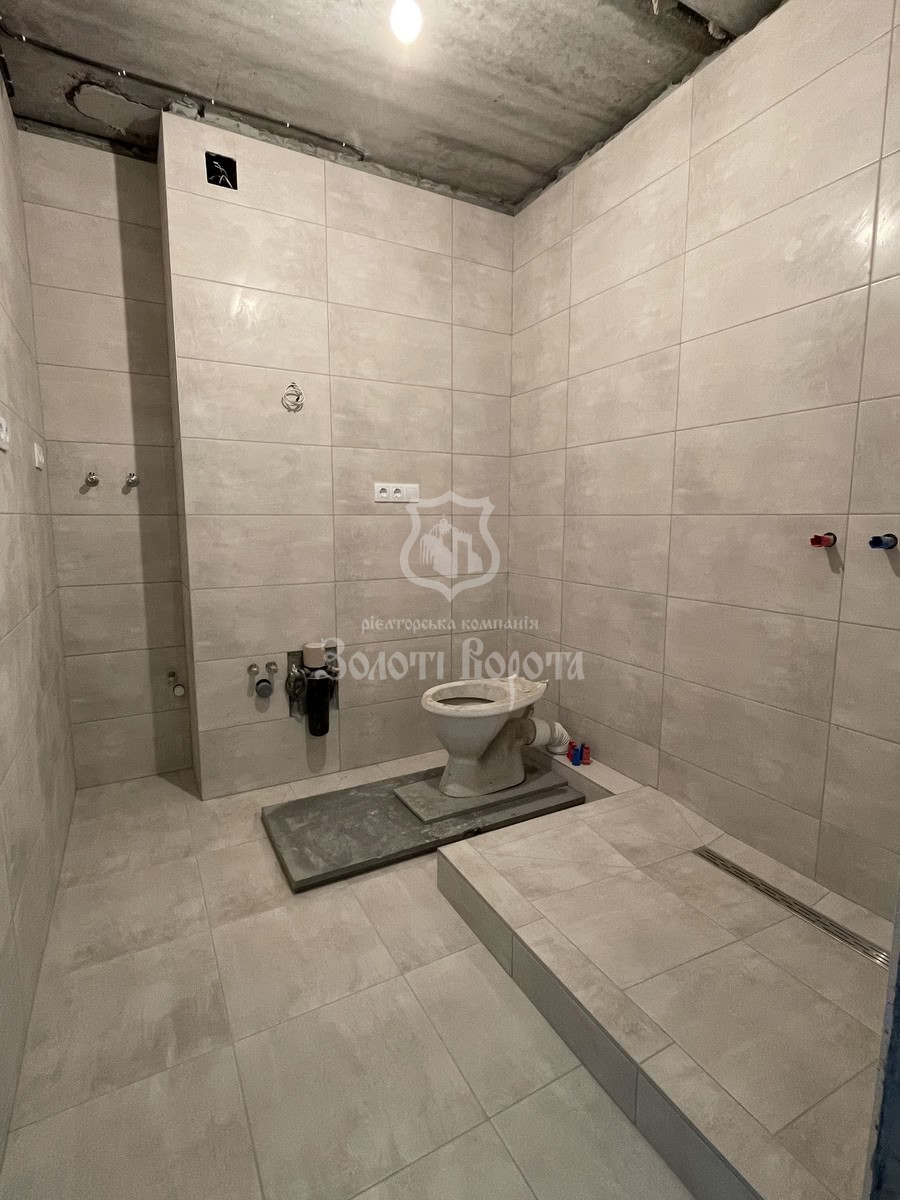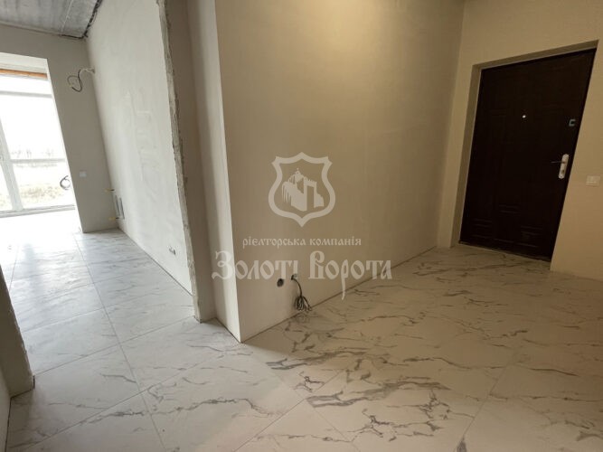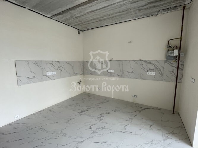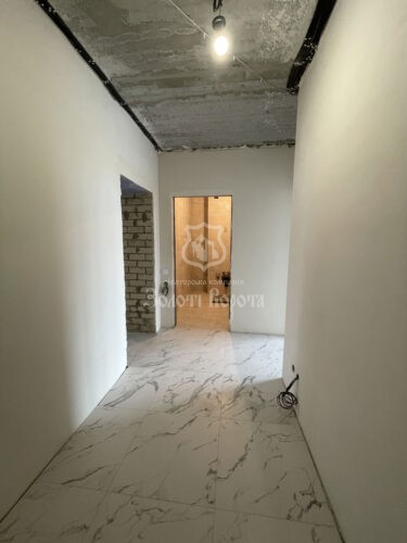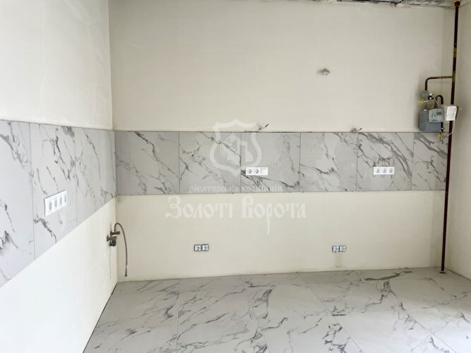 Покладено плитку в коридорі, кухні, ванній кімнаті та на лоджії, змонтовано фартух на кухні, зроблено укоси вікна. Встановлена водяна тепла підлога по всій площі, окрім кімнати.