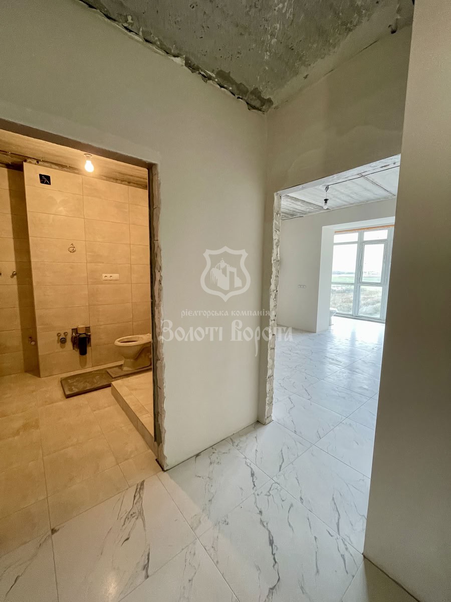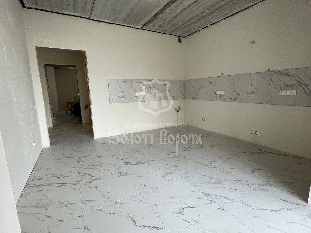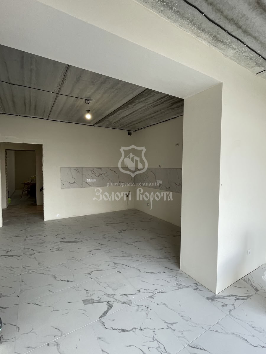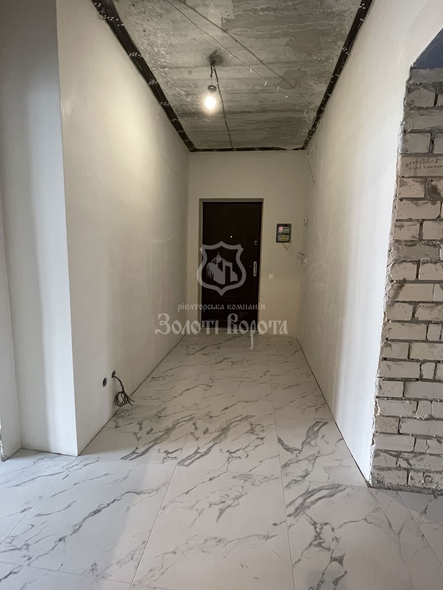Покладено плитку в коридорі, кухні, ванній кімнаті та на лоджії, змонтовано фартух на кухні, зроблено укоси вікна. Встановлена водяна тепла підлога по всій площі, окрім кімнати.