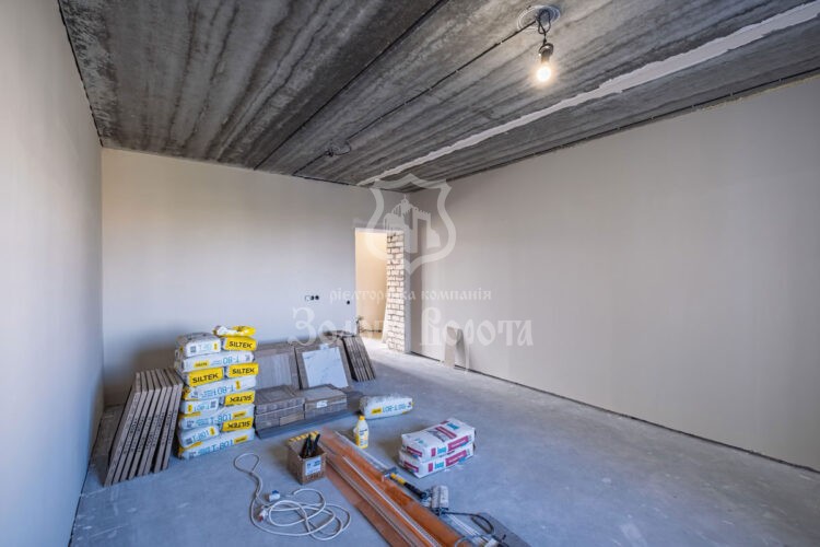 У квартирі вже виконано частину робіт: розведено електрику та сантехніку, заведено кабелі для інтернету, встановлено газовий котел, інсталяцію для підвісного унітаза, лічильники тепла. Стіни пошпакльовані, готові до фінального оздоблення.