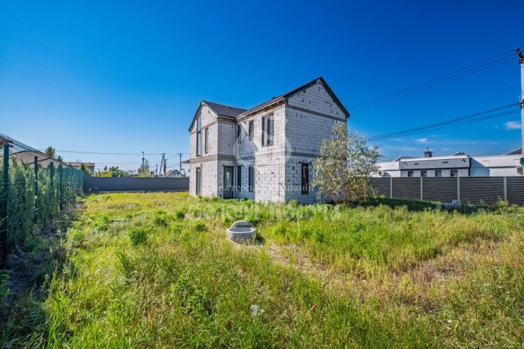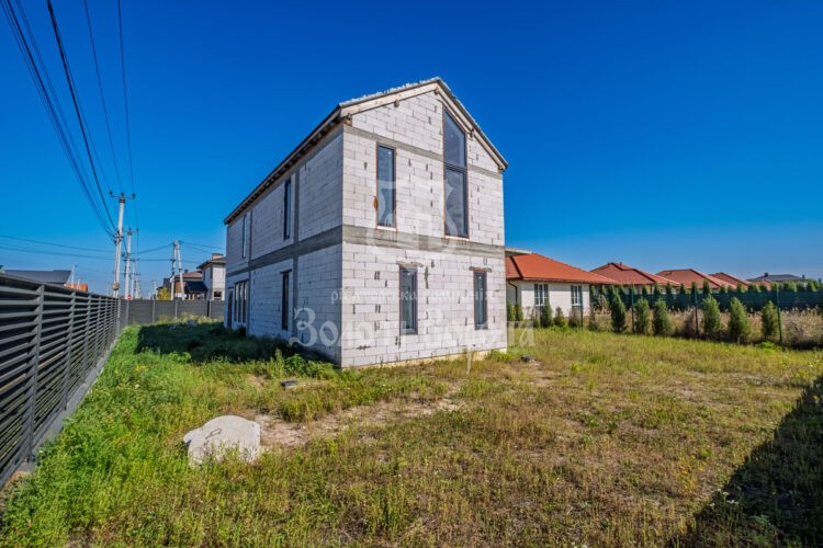 Будинок зведено на монолітному залізобетонному фундаменті глибиною 1.3 м, стіни — газобетон D500 (300 мм), міжкімнатні перегородки — 200 мм, що забезпечує якісну звукоізоляцію.