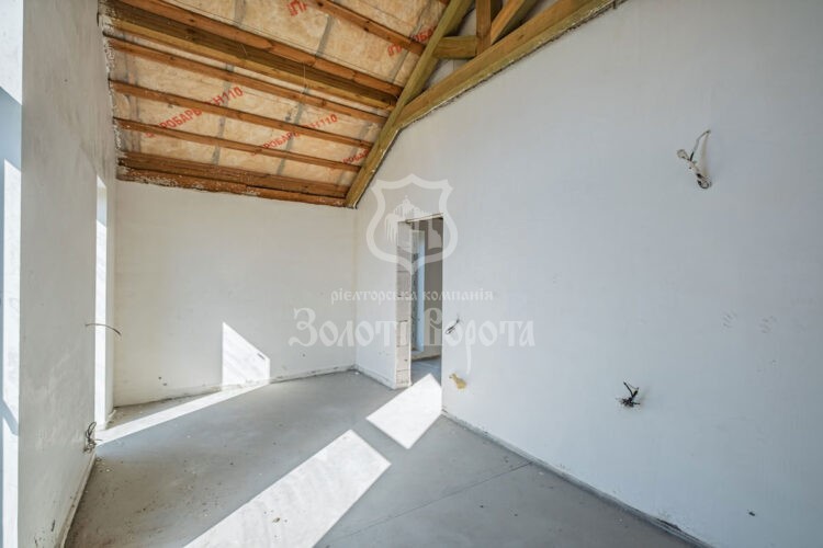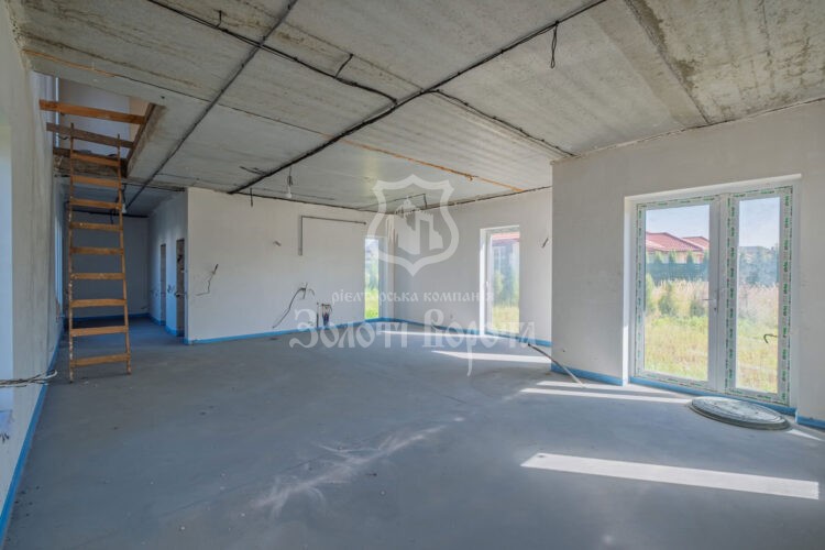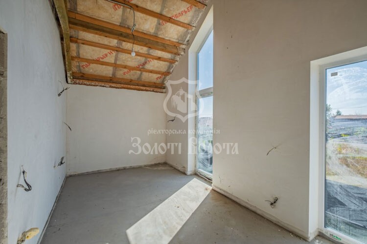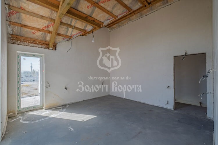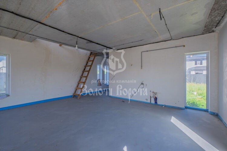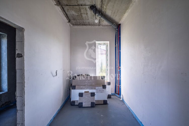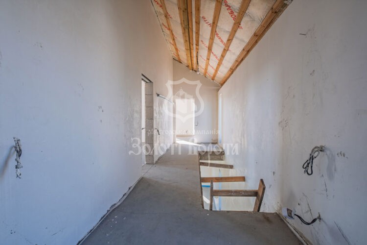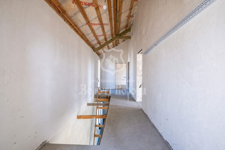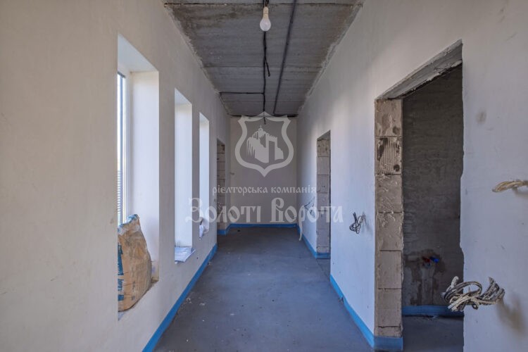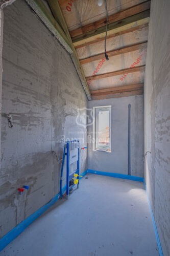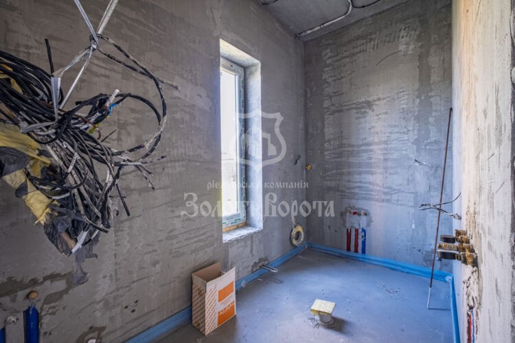 Стіни вирівняні, готові до фарбування або наклеювання шпалер. У санвузлі — інсталяція. Газ заведено в будинок, є проєкт.