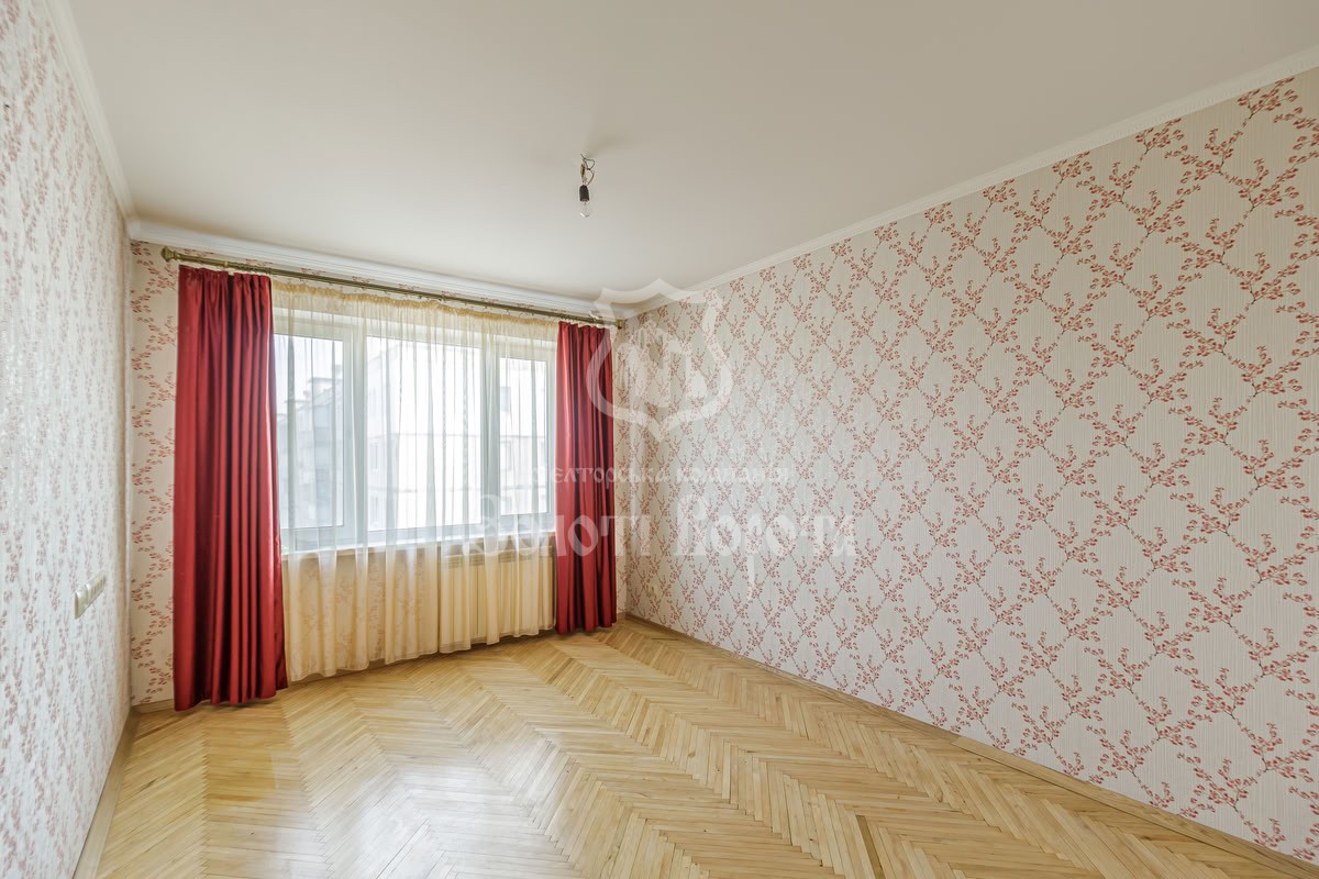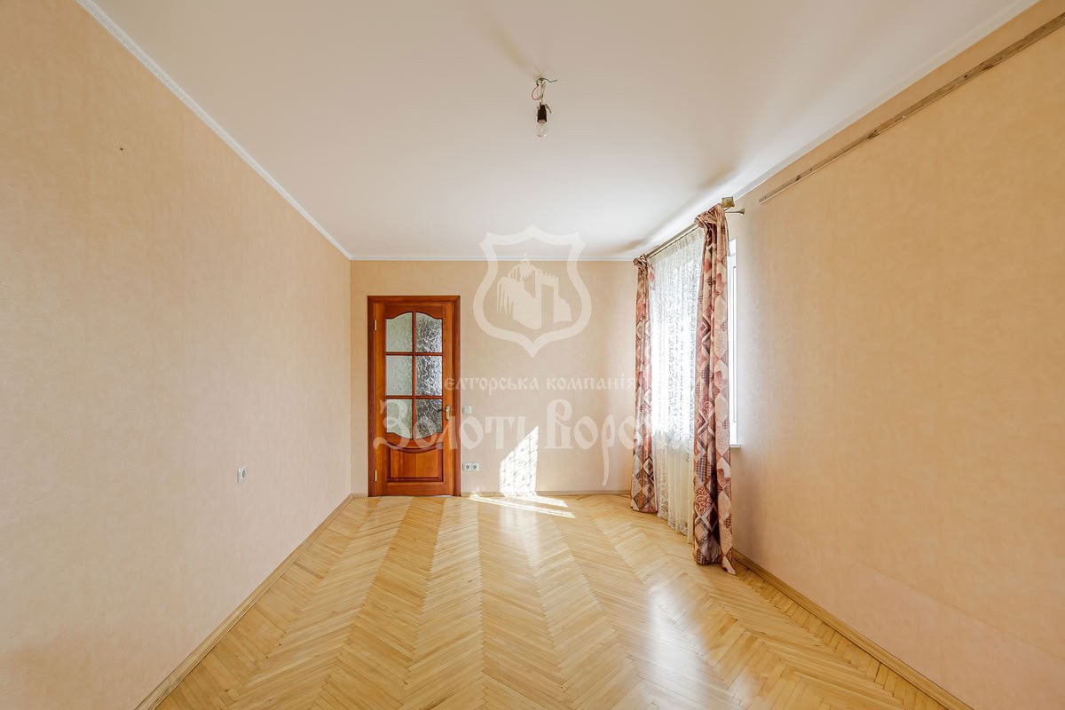 Загальна площа — 66,5 м2, кухня — 7,6 м2. Помешкання збережене у гарному стані: паркетна підлога, шпалери на стінах, суміжно-роздільне планування кімнат, велика кількість світла завдяки вікнам, орієнтованим на схід, південь та захід.
