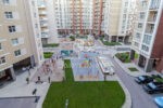Комплекс має закриту територію з дитячими та спортивними майданчиками, зонами для відпочинку, підземним паркінгом, магазинами, аптеками, салонами краси, приватним дитячим садком і навіть грумер-салоном для домашніх улюбленців.