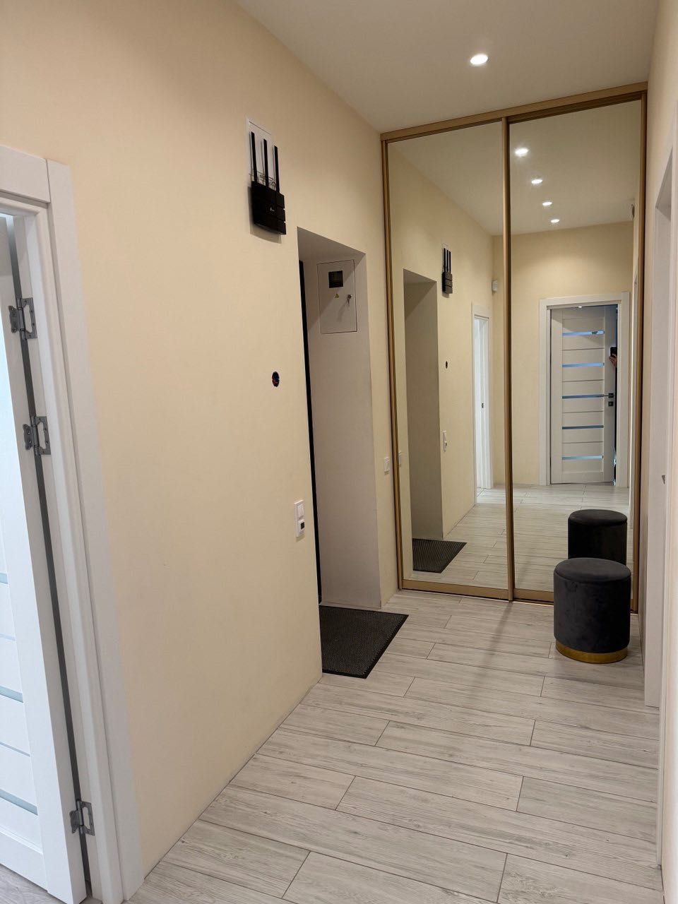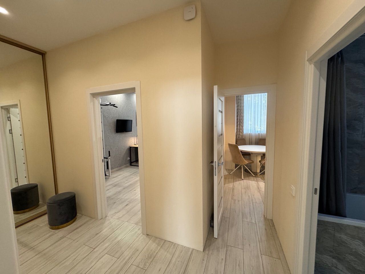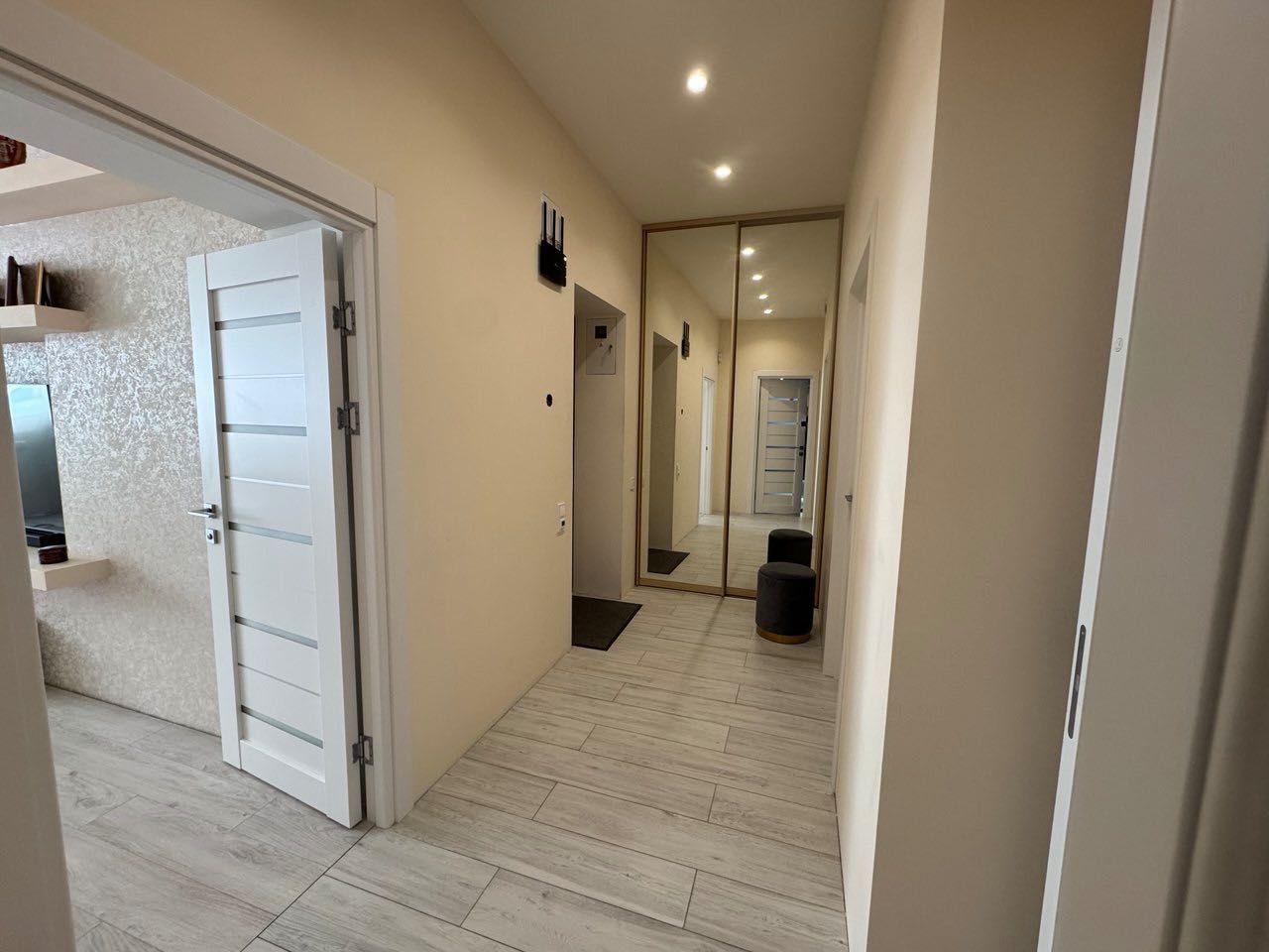 Безпеку гарантує інноваційна сигналізація AJAX, що захищає від проникнення, пожежі та затоплення. Додатковий бонус — велика містка шафа-купе у коридорі.