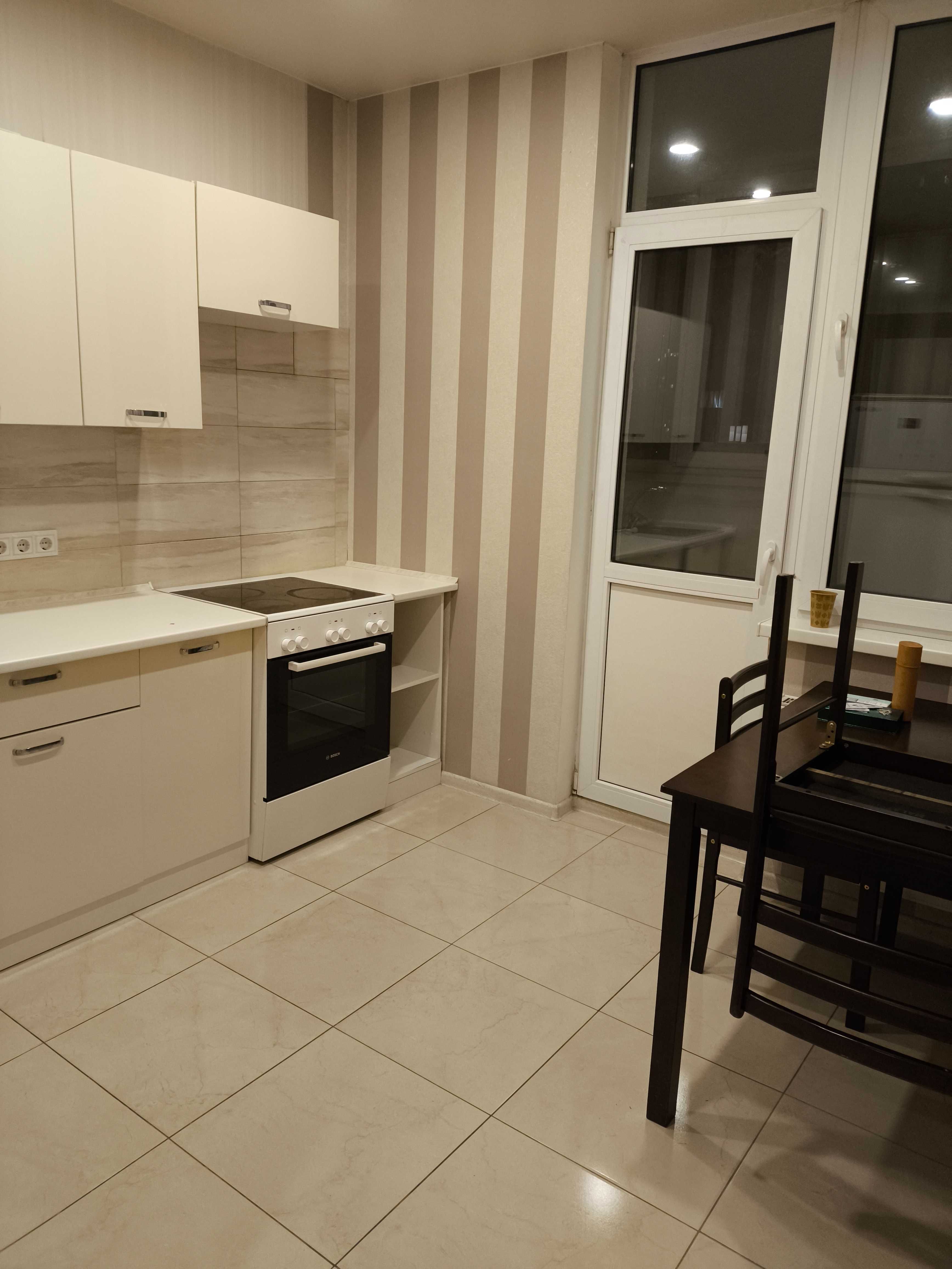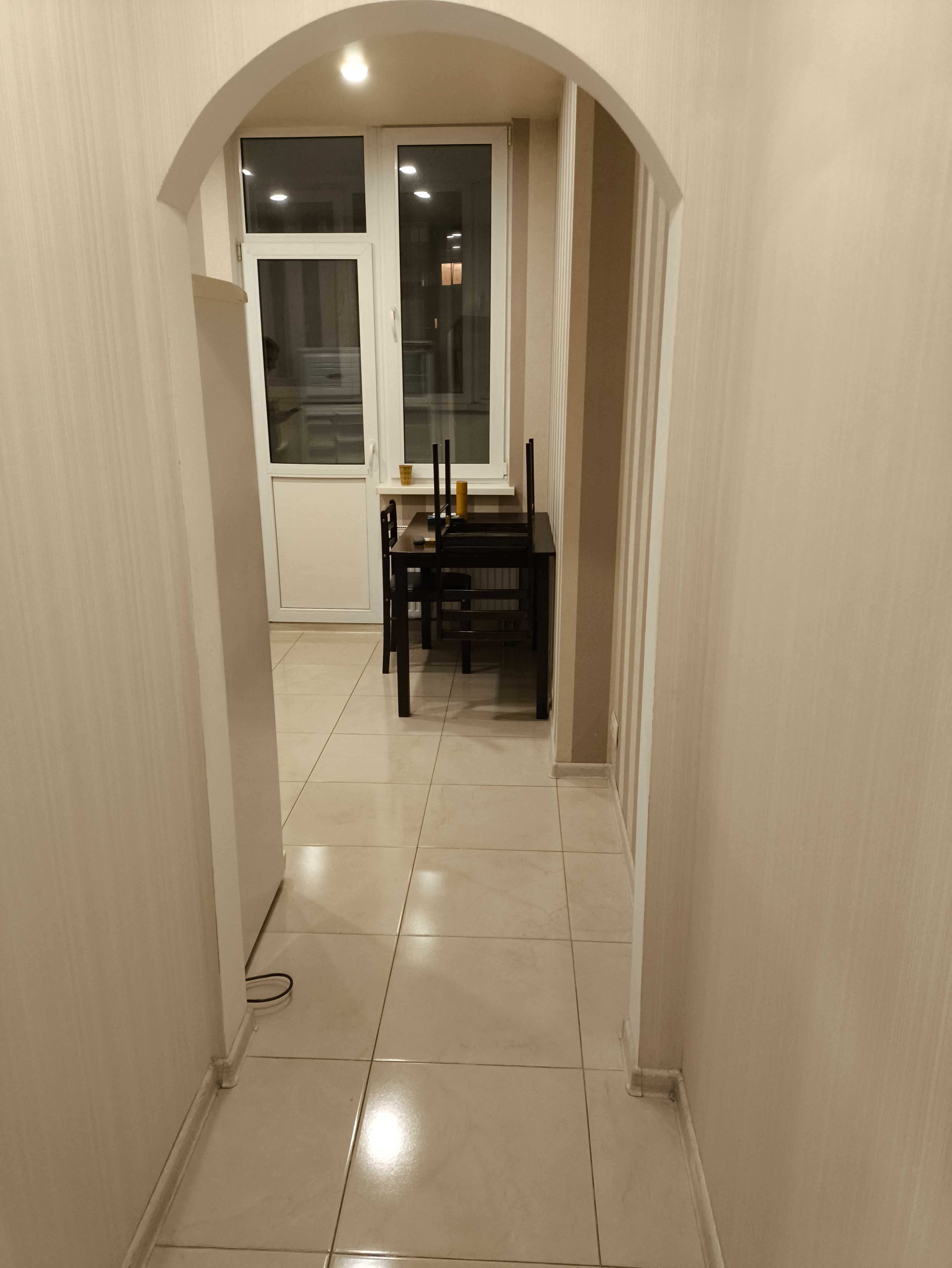 Світлий простір із комфортною кухнею площею 9 м² вражає гарним ремонтом, де підлоги вкрита плиткою та ламінатом, а на стінах - акуратні шпалери. Санвузол суміжний, повністю облицьований плиткою, з ванною — ідеальне місце для релаксу після насиченого дня.