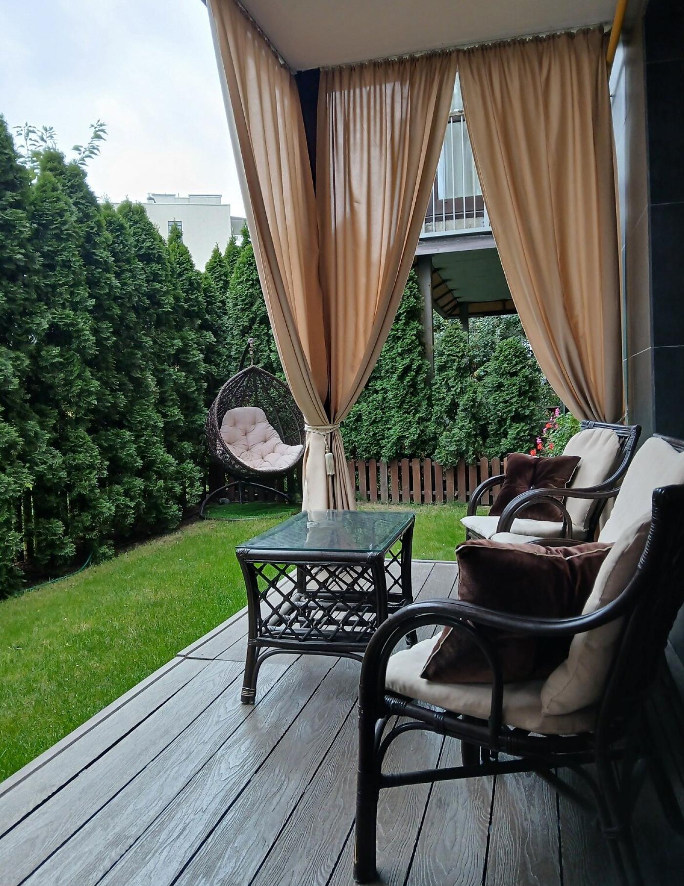 Головна перевага — велика власна тераса з ремонтом та меблями, ідеальна для відпочинку та сніданків на свіжому повітрі. У квартирі використані тільки найкращі матеріали: у студії укладена паркетна дошка з дерева Мербау, у коридорі та двох кімнатах — декоративна венеціанська штукатурка.