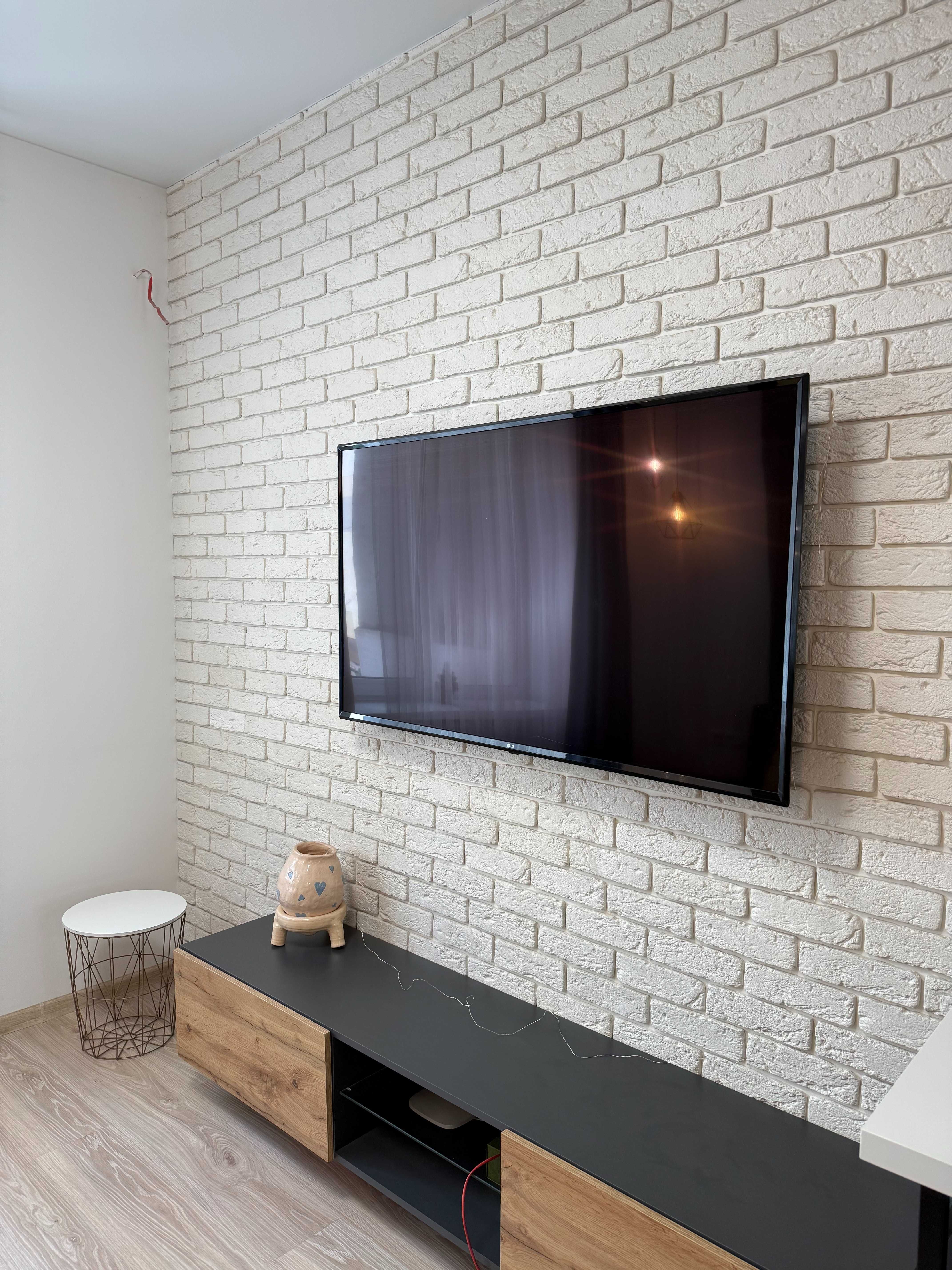 Ця оселя буквально напхана преміальною технікою та розумними рішеннями. На кухні встановлені варильна поверхня Siemens, духова шафа Samsung (з грилем та мікрохвильовкою), вбудований холодильник Whirlpool та посудомийна машина Bosch. Розваги забезпечать два LG Smart TV (55’’ у вітальні та 32’’ на кухні).