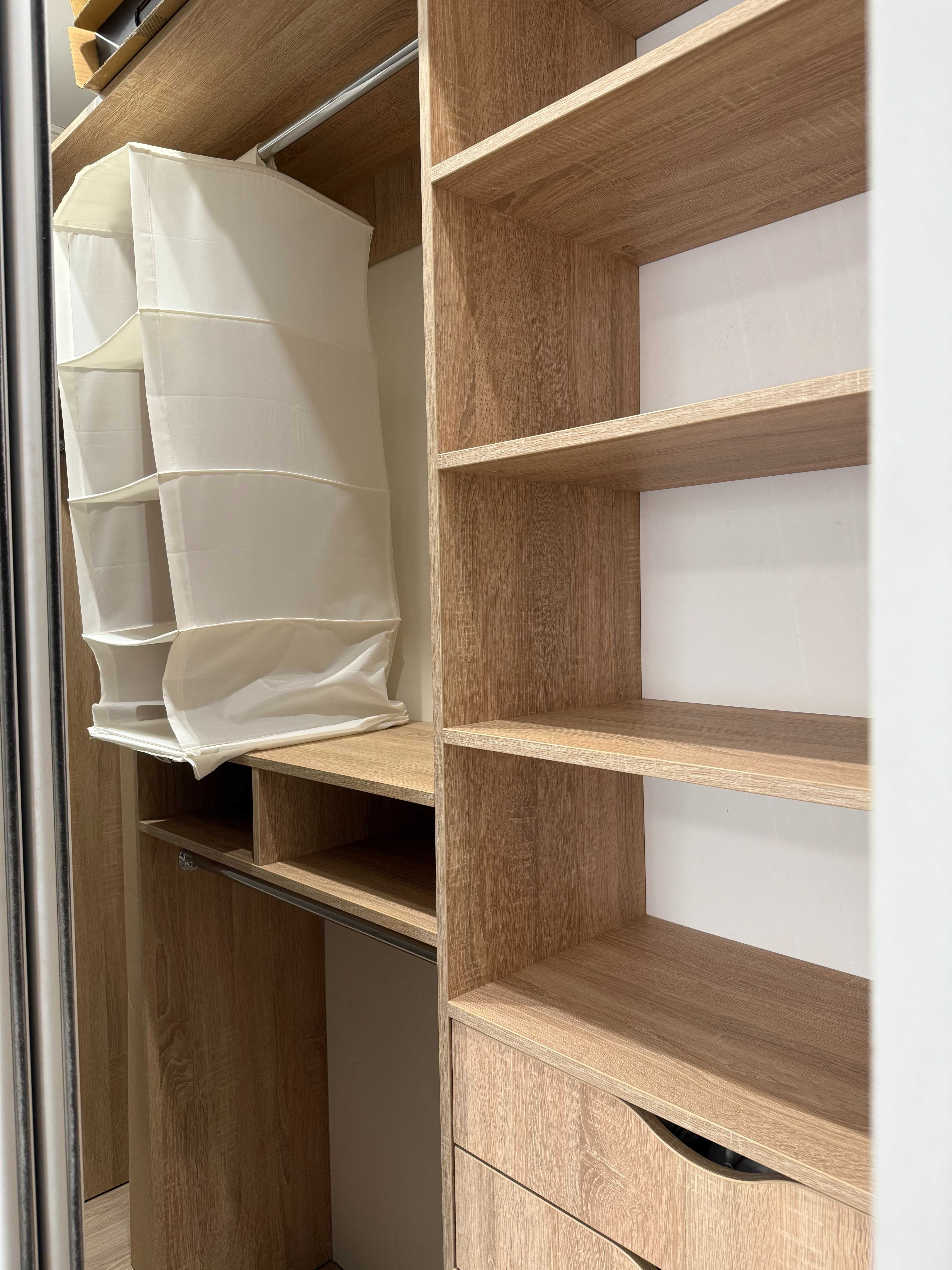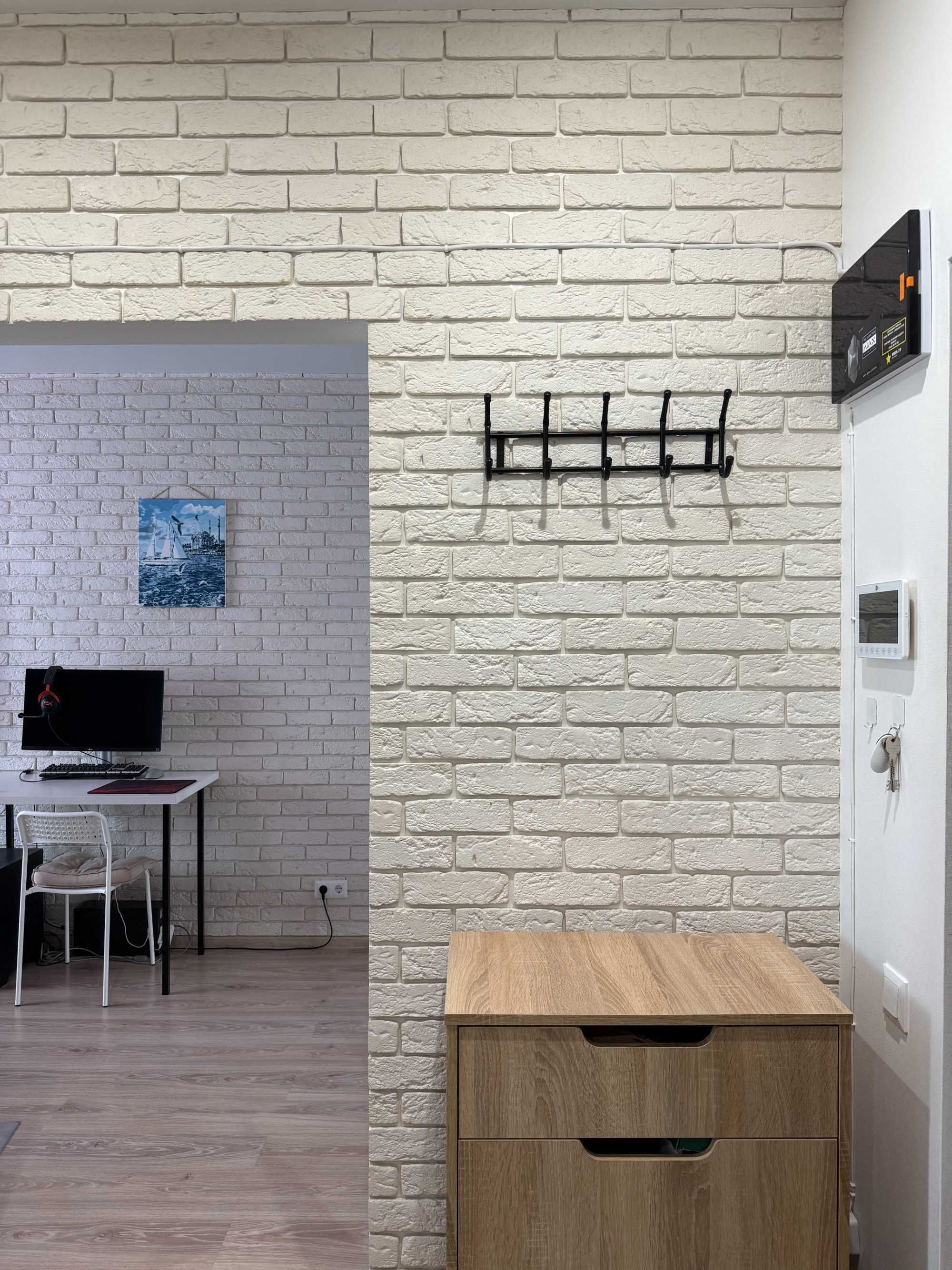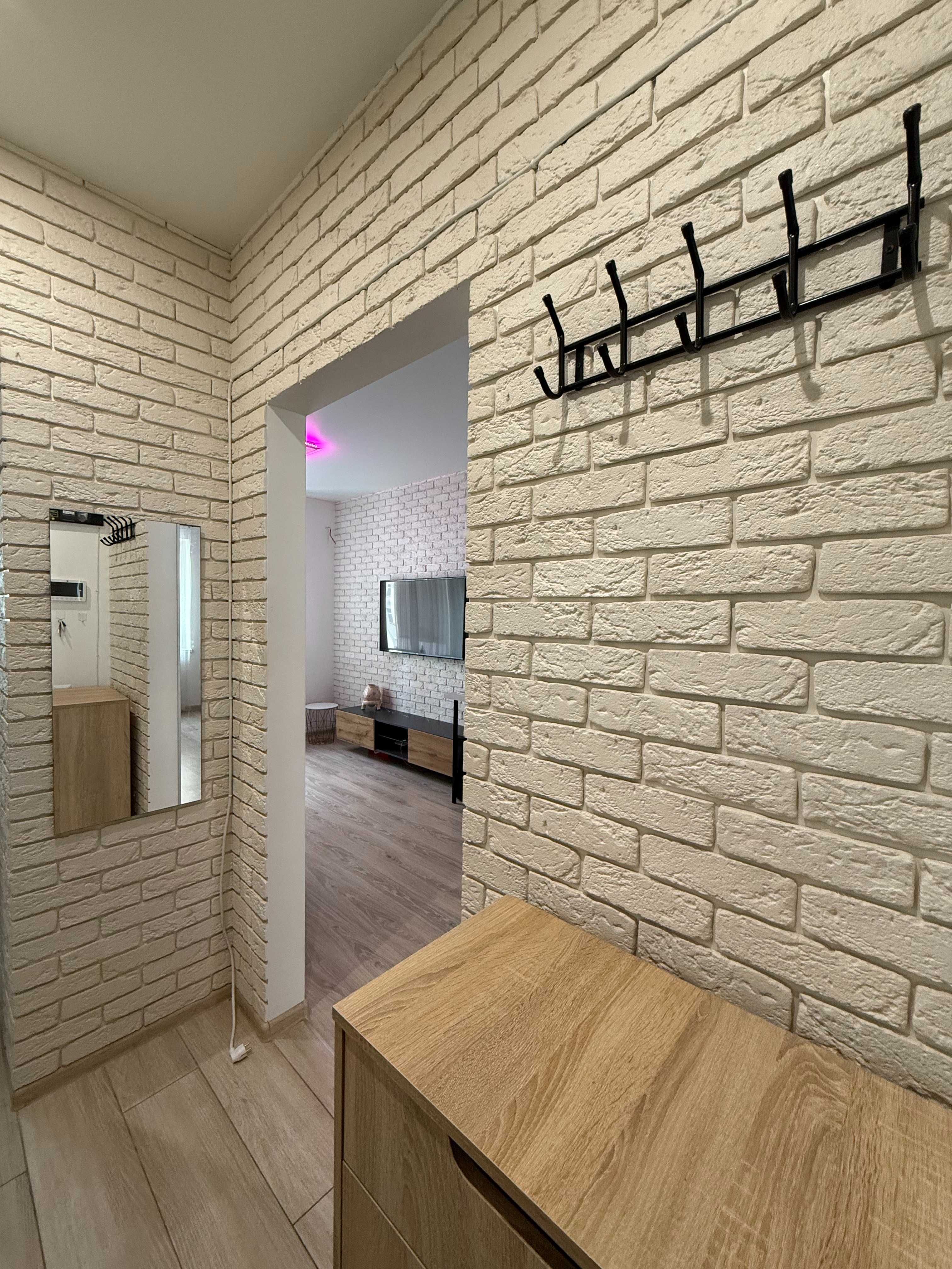 Квартира має чудове, продумане планування з окремою спальнею та кухнею. Ви здивуєтеся, але тут знайшлося місце навіть для гардеробної кімнати — рідкісне рішення для такої площі!