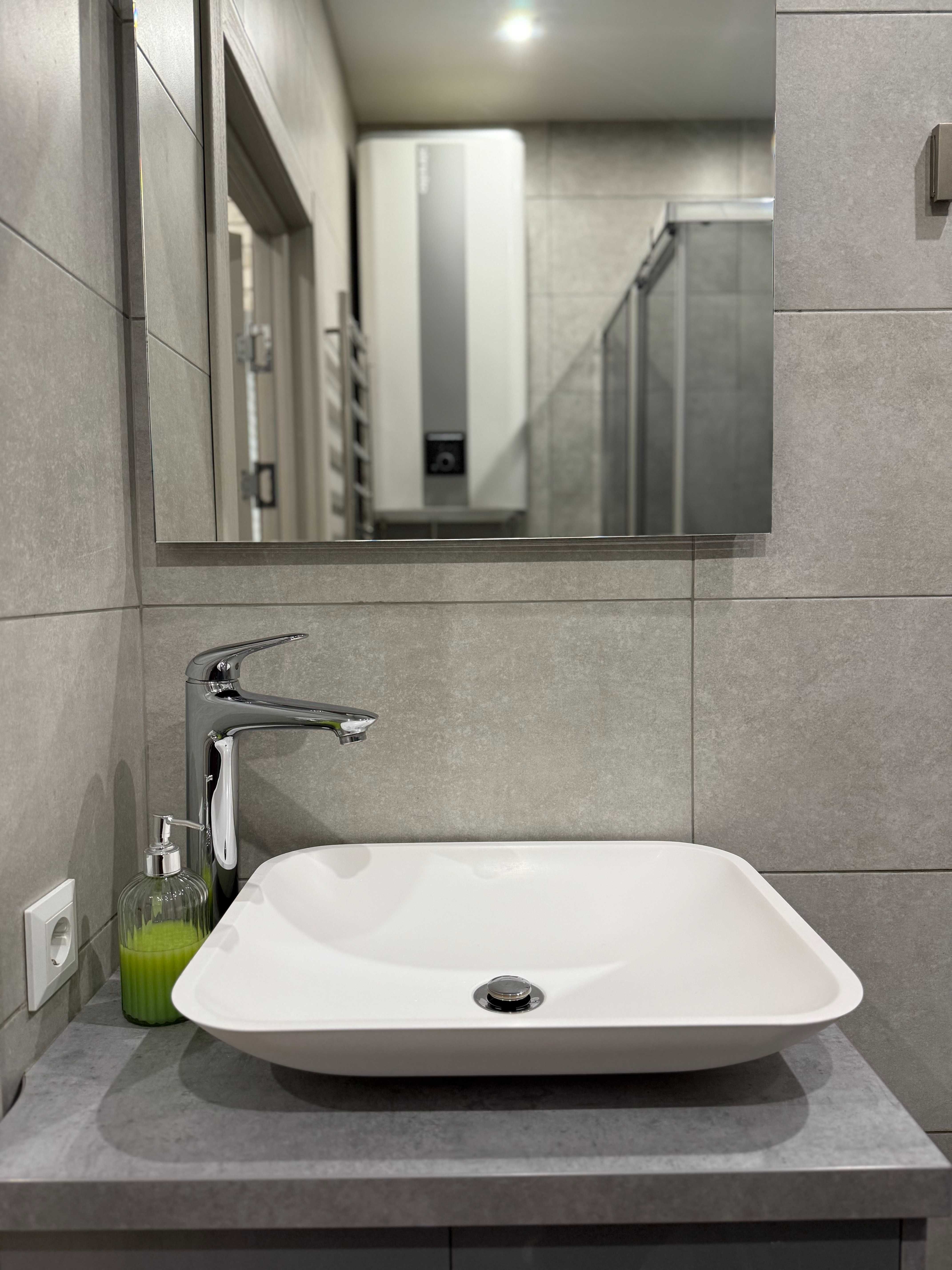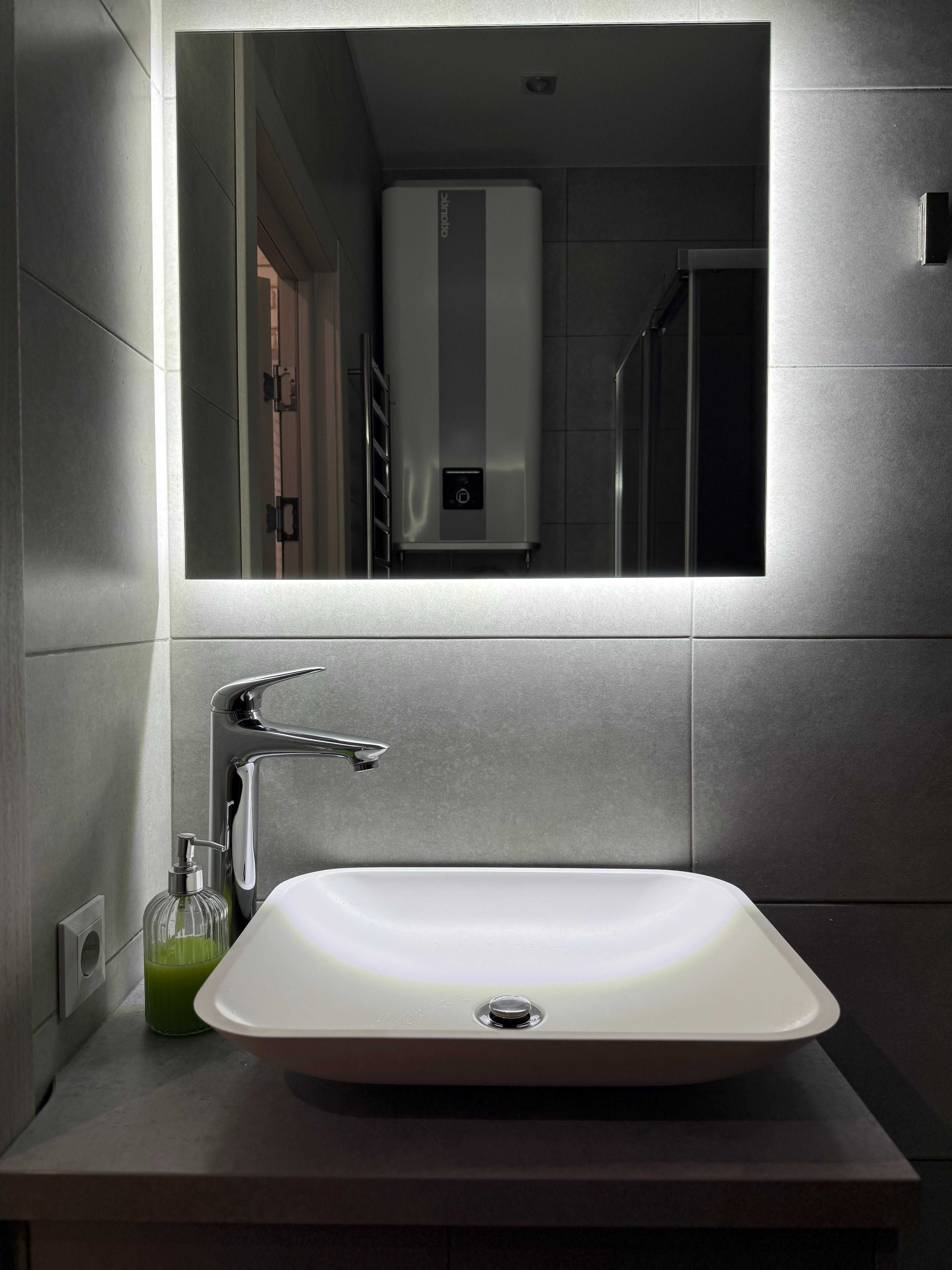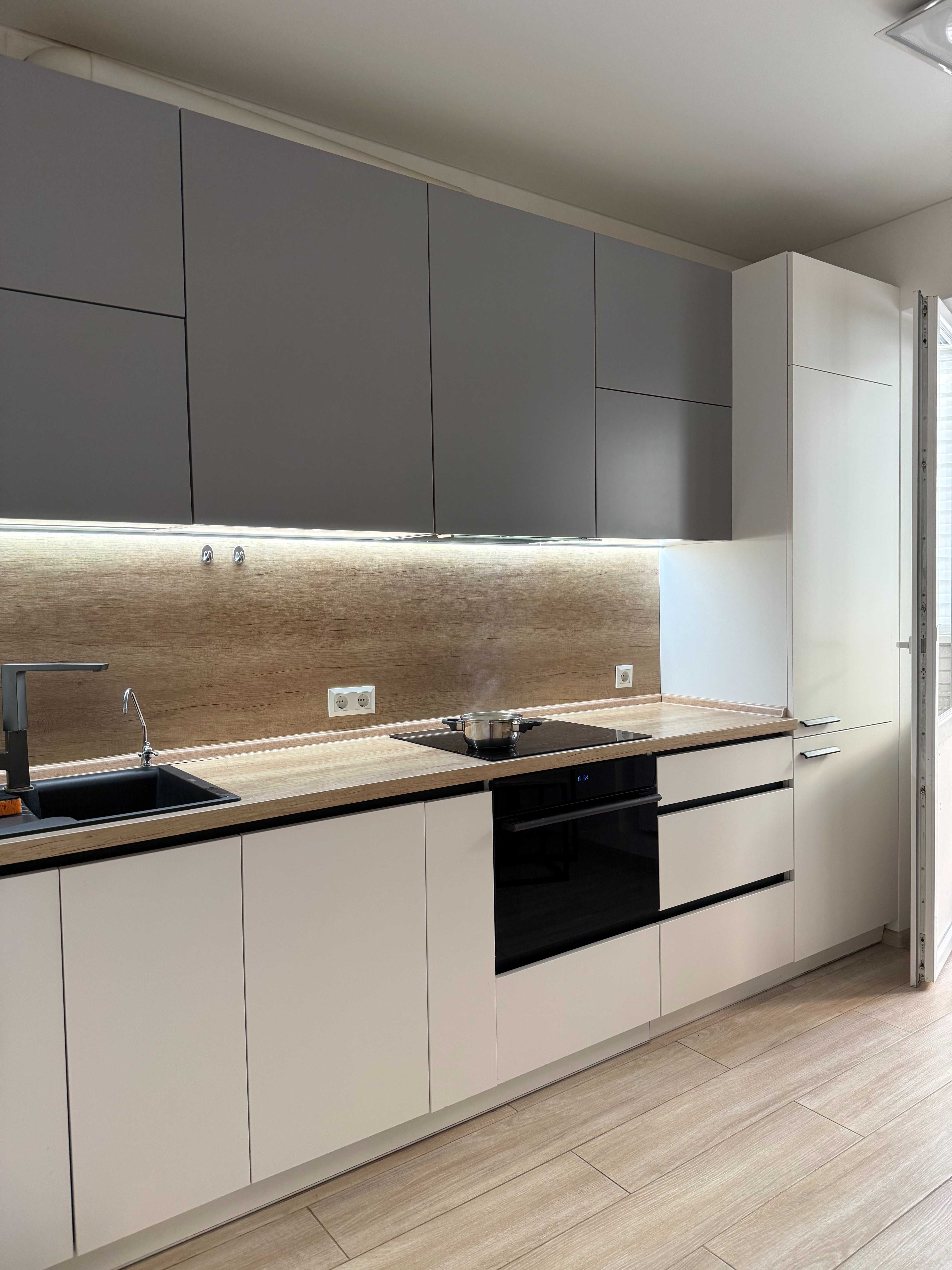 В оздобленні використані лише преміальні бренди: сантехніка Hansgrohe, Grohe, Kolo, Geberit. Ванна кімната має підігрів підлоги та сучасну інсталяцію. Кухонні меблі виготовлені з фарбованого МДФ із фурнітурою Blum. Усі матеріали — стильні, практичні та довговічні.