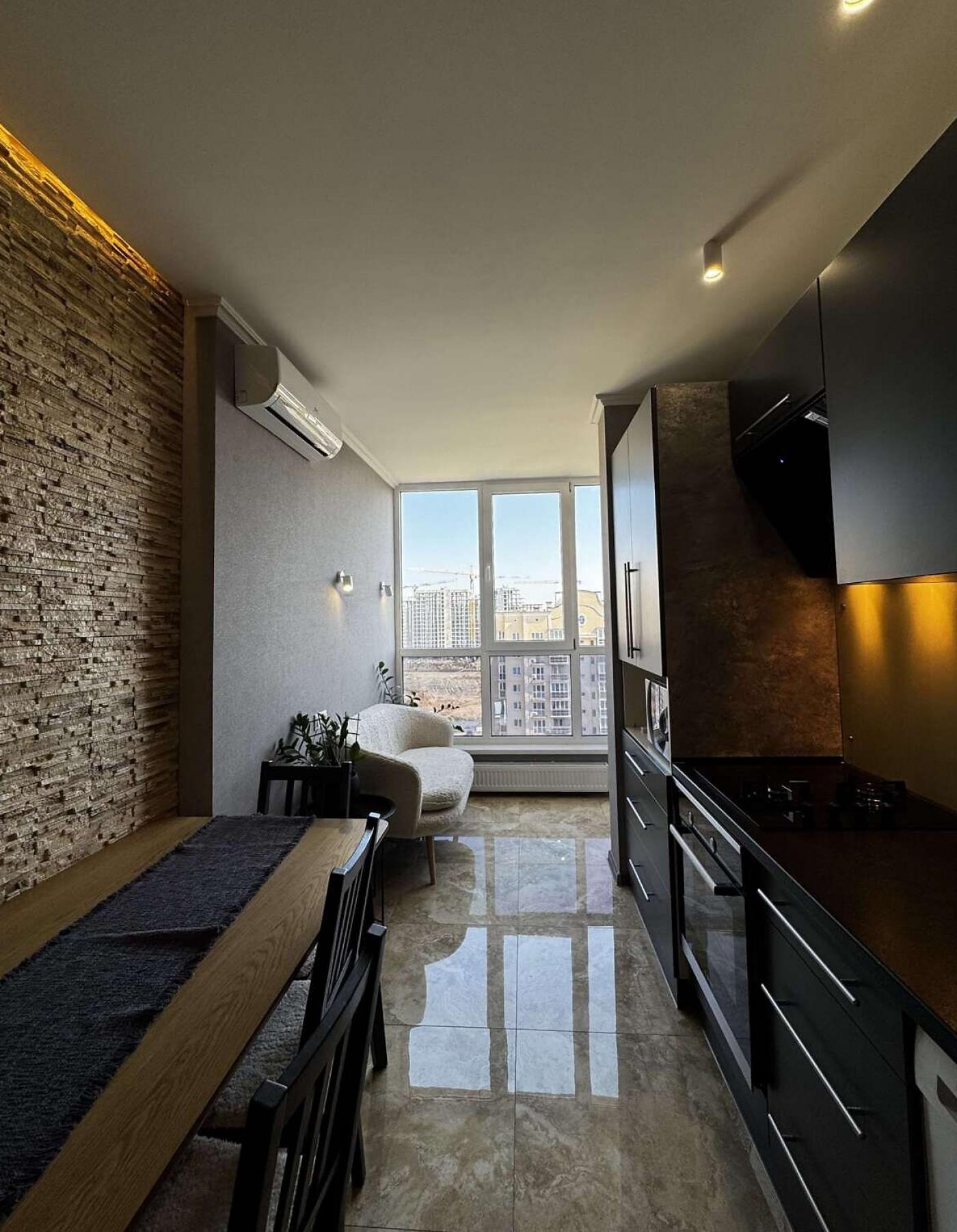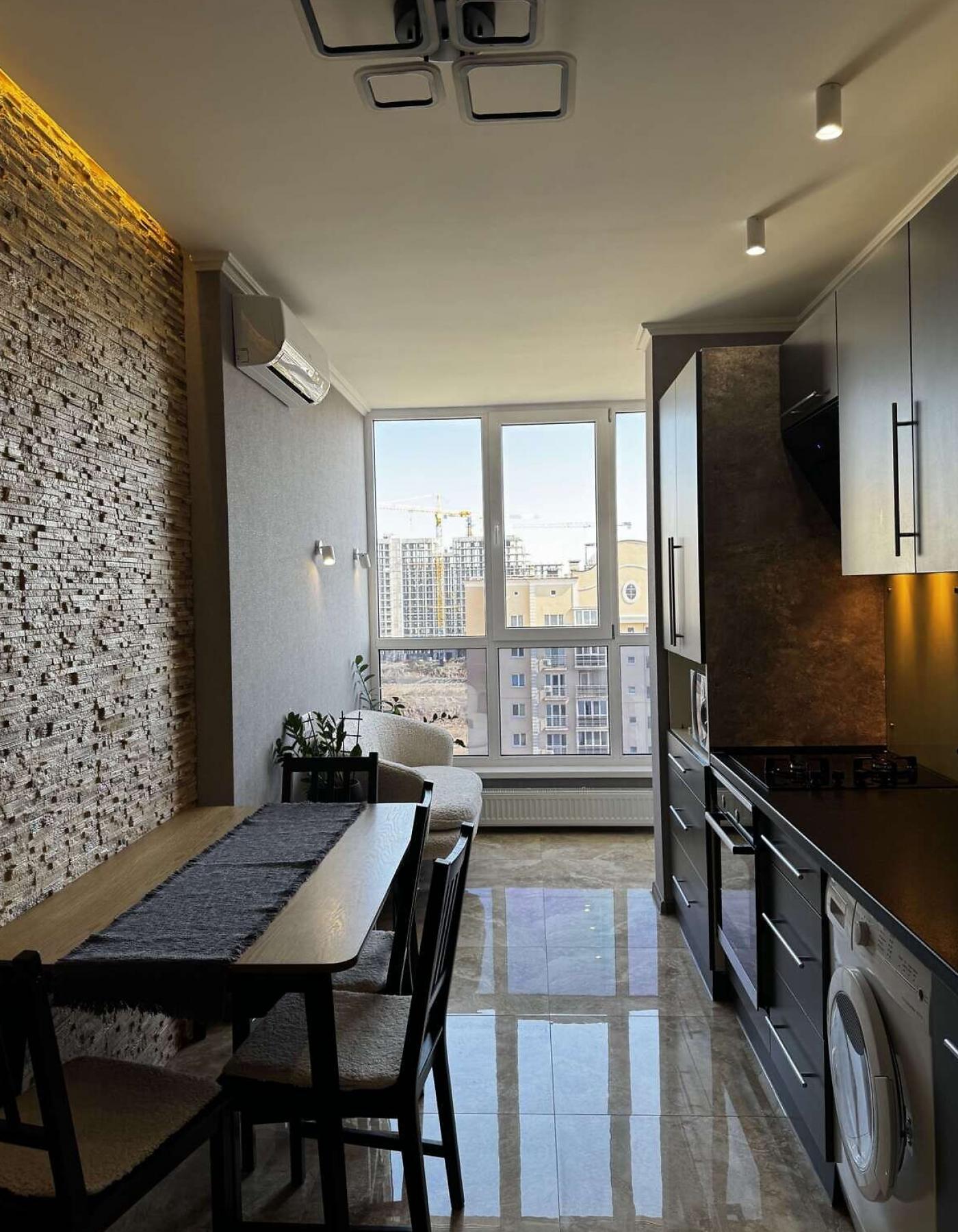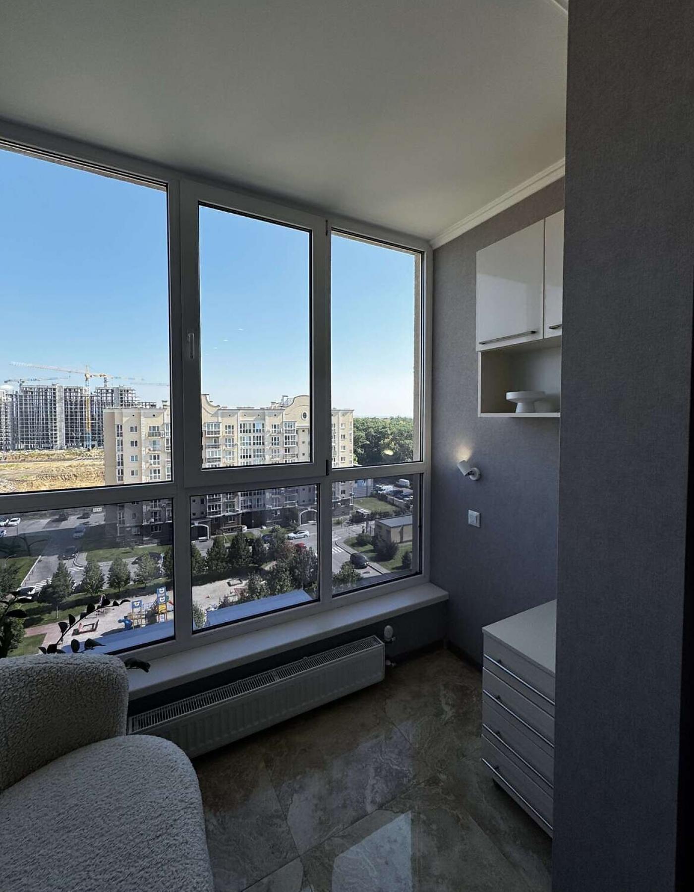 Квартира повністю готова до заселення: виконаний якісний ремонт у нейтральних світлих тонах, а за рахунок великих панорамних вікон вона дуже світла. Житло облаштоване якісними меблями та сучасною технікою.