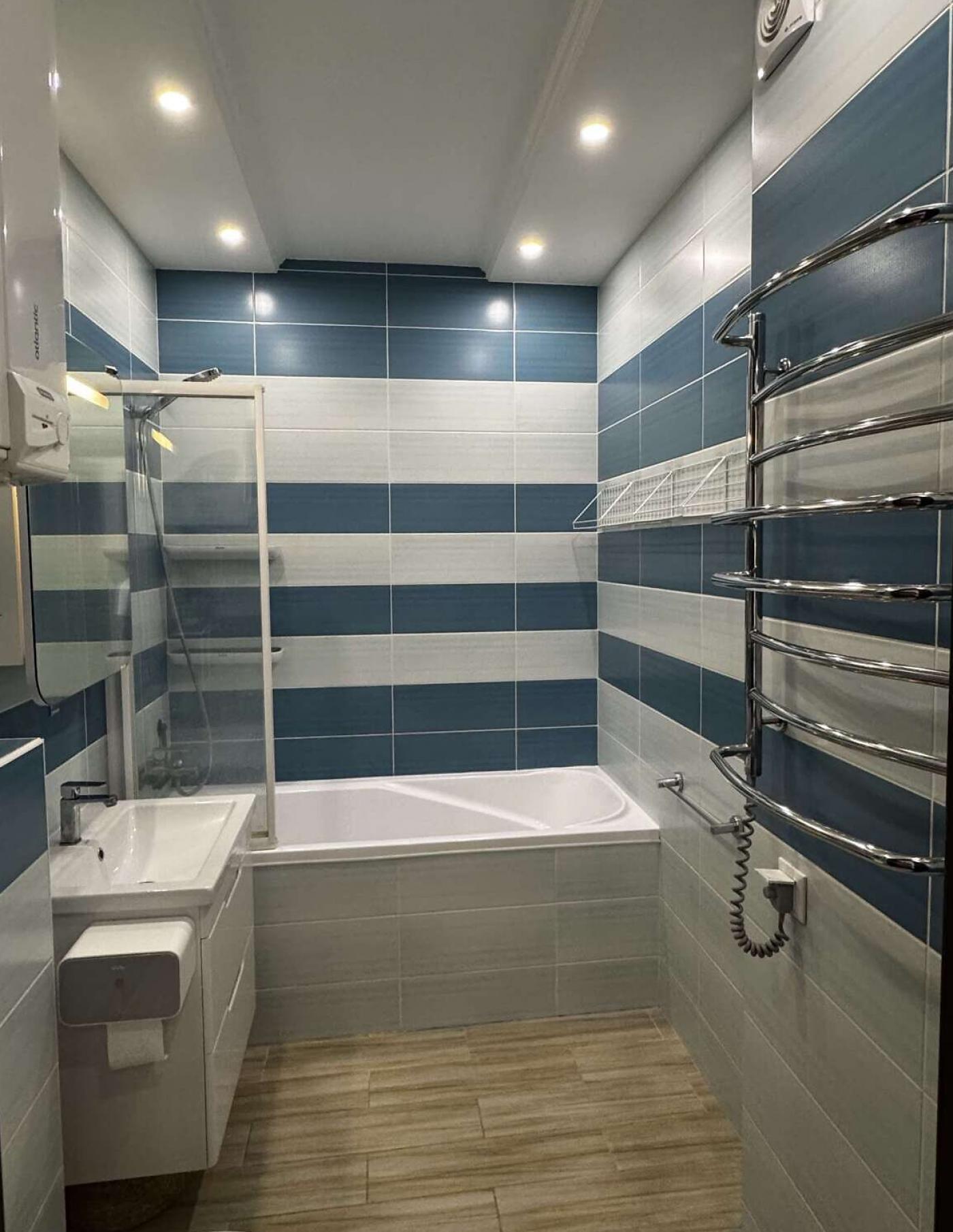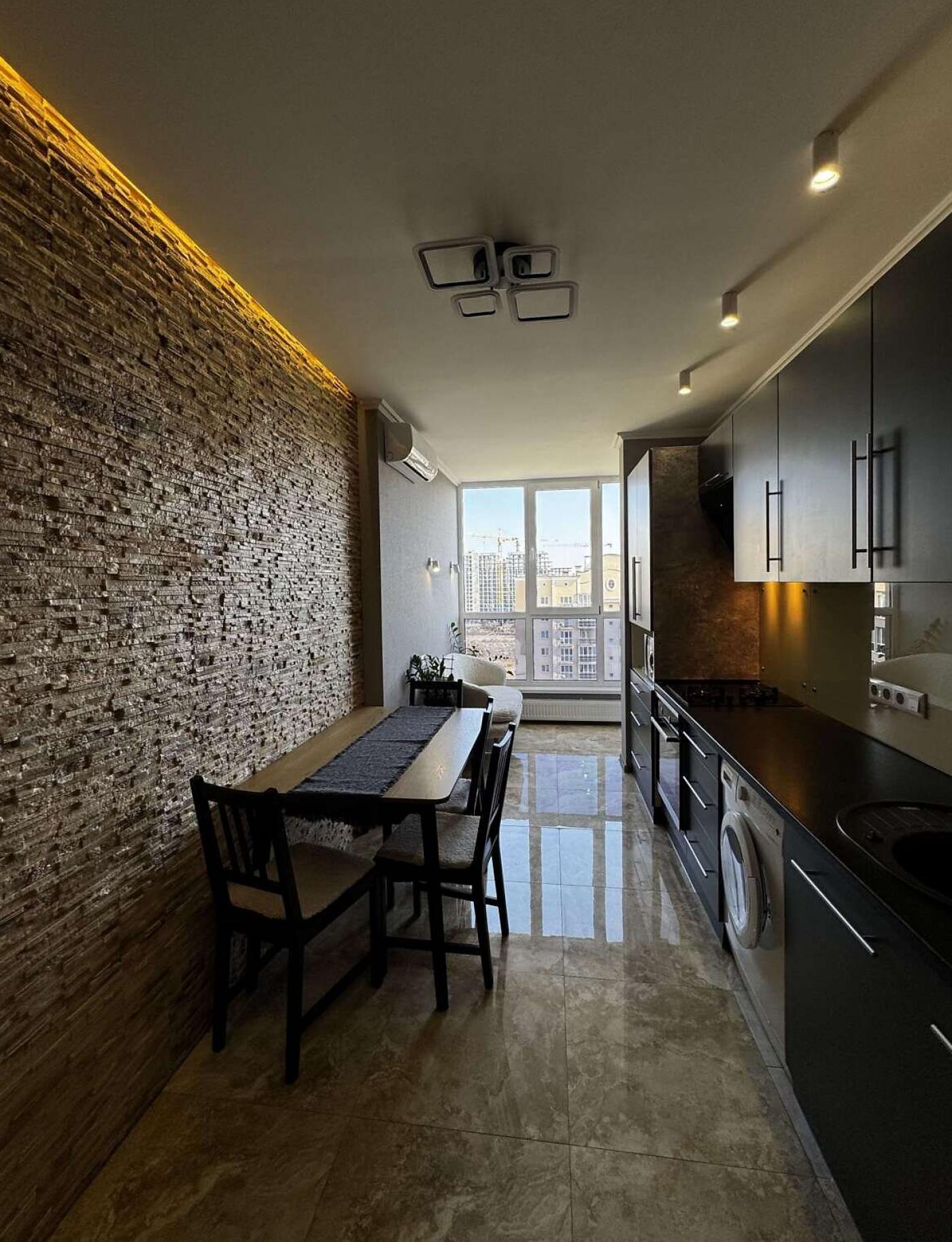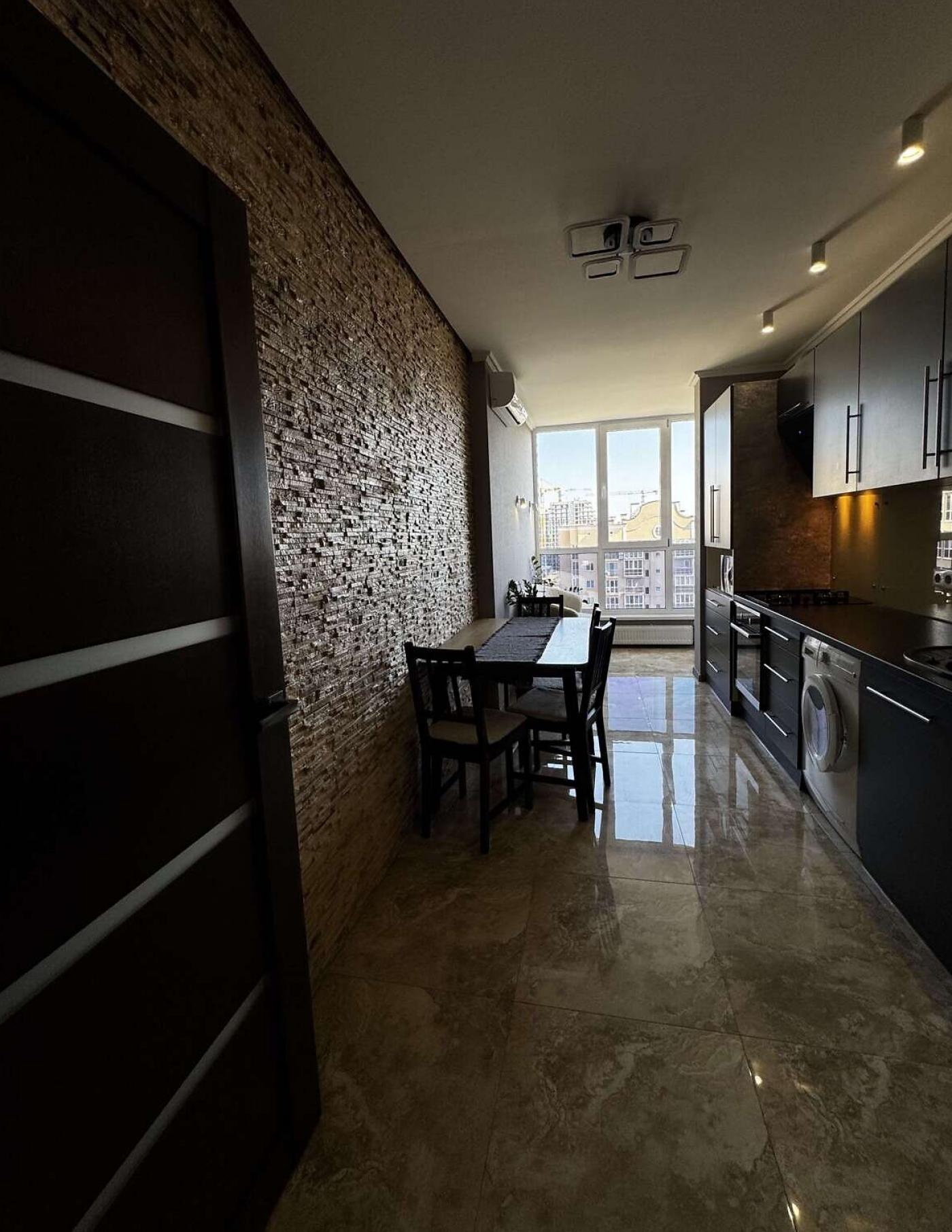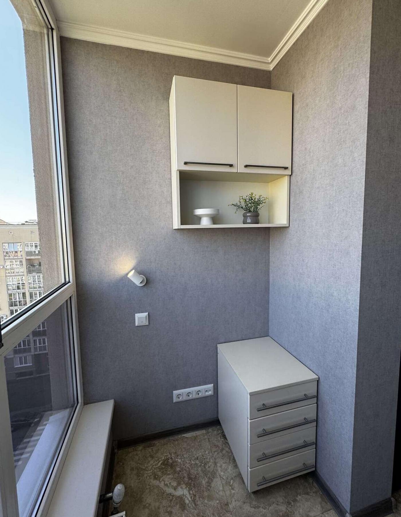 Квартира повністю готова до заселення: виконаний якісний ремонт у нейтральних світлих тонах, а за рахунок великих панорамних вікон вона дуже світла. Житло облаштоване якісними меблями та сучасною технікою.