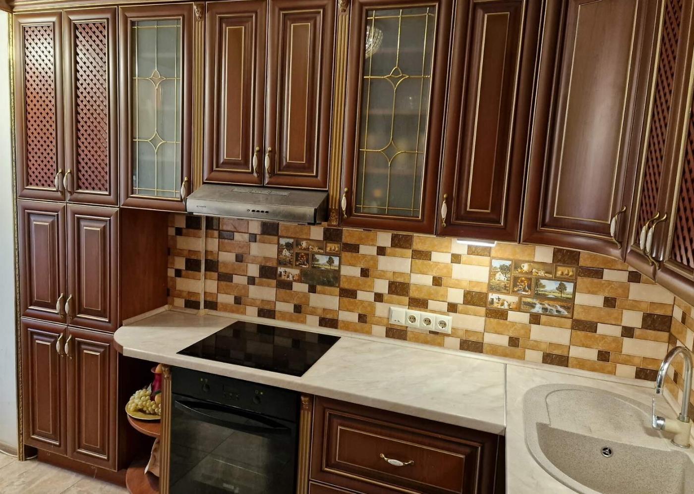 Квартира продається з меблями та повністю оснащена технікою: холодильником, пральною машиною, духовою шафою, варильною поверхнею, телевізором і кухонними меблями.