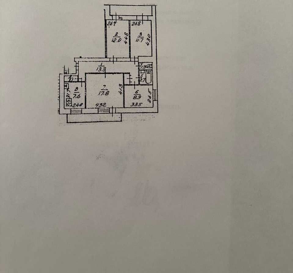 Квартира має раціональне планування з окремими кімнатами площею 12 м2, 11,7 м2, 8,9 м2 та 17,8 м2, просторим коридором на 13,3 м2 і кухнею 7,6 м2.