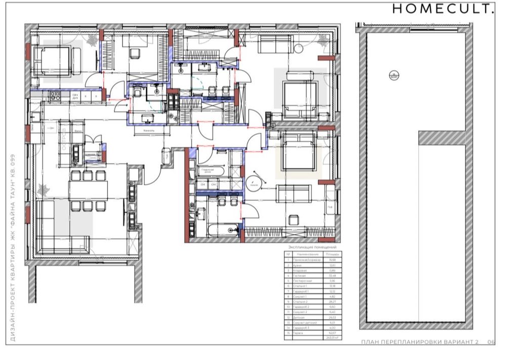 У квартирі виконано перепланування, є готовий дизайн-проєкт. Простір організовано максимально функціонально: три спальні, три санвузли, велика тераса — ідеальне рішення для родини або тих, хто цінує комфорт і стиль.
