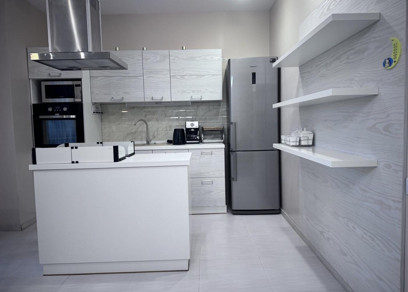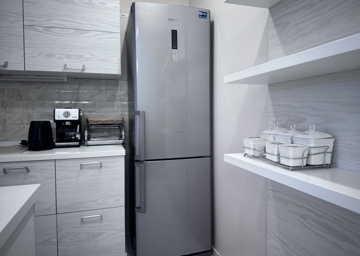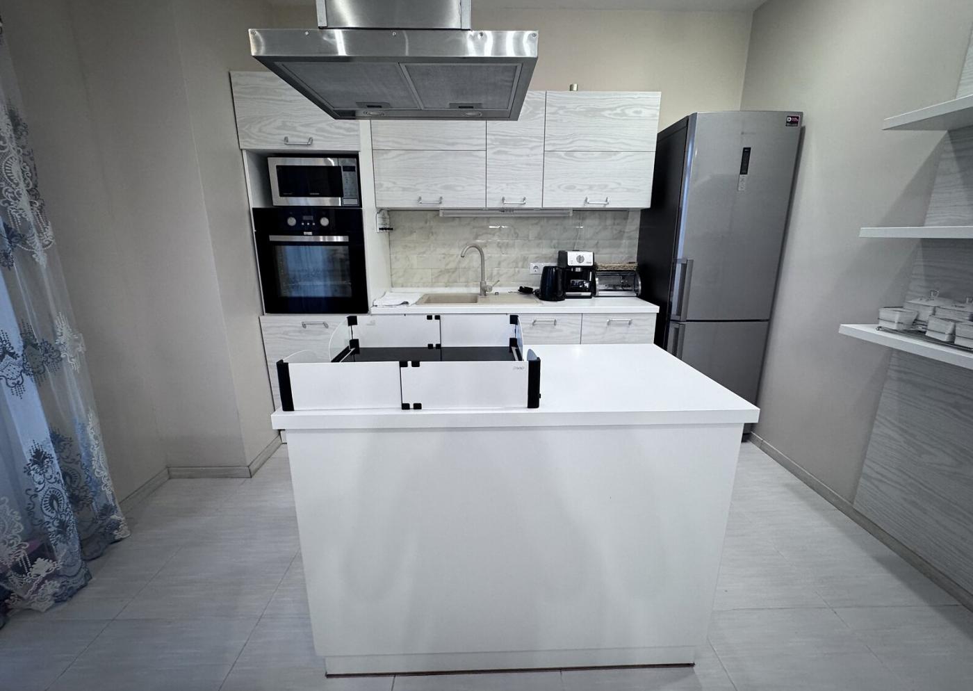 Готувати тут одне задоволення завдяки індукційній плиті, вмонтованій в острів, а також вбудованій посудомийній машині, холодильнику Samsung та новій пральній машині.