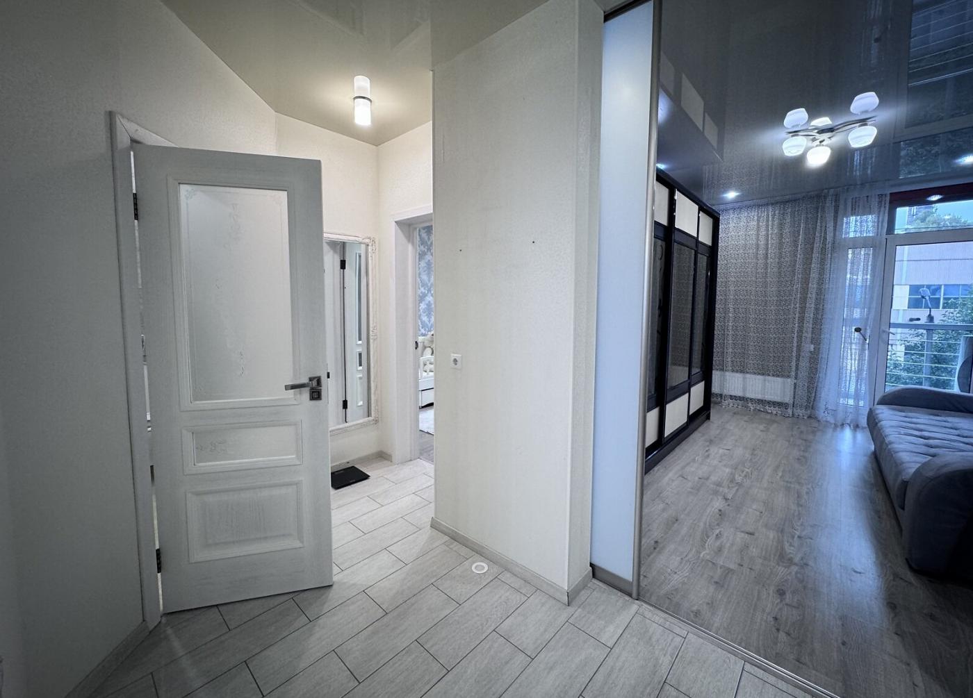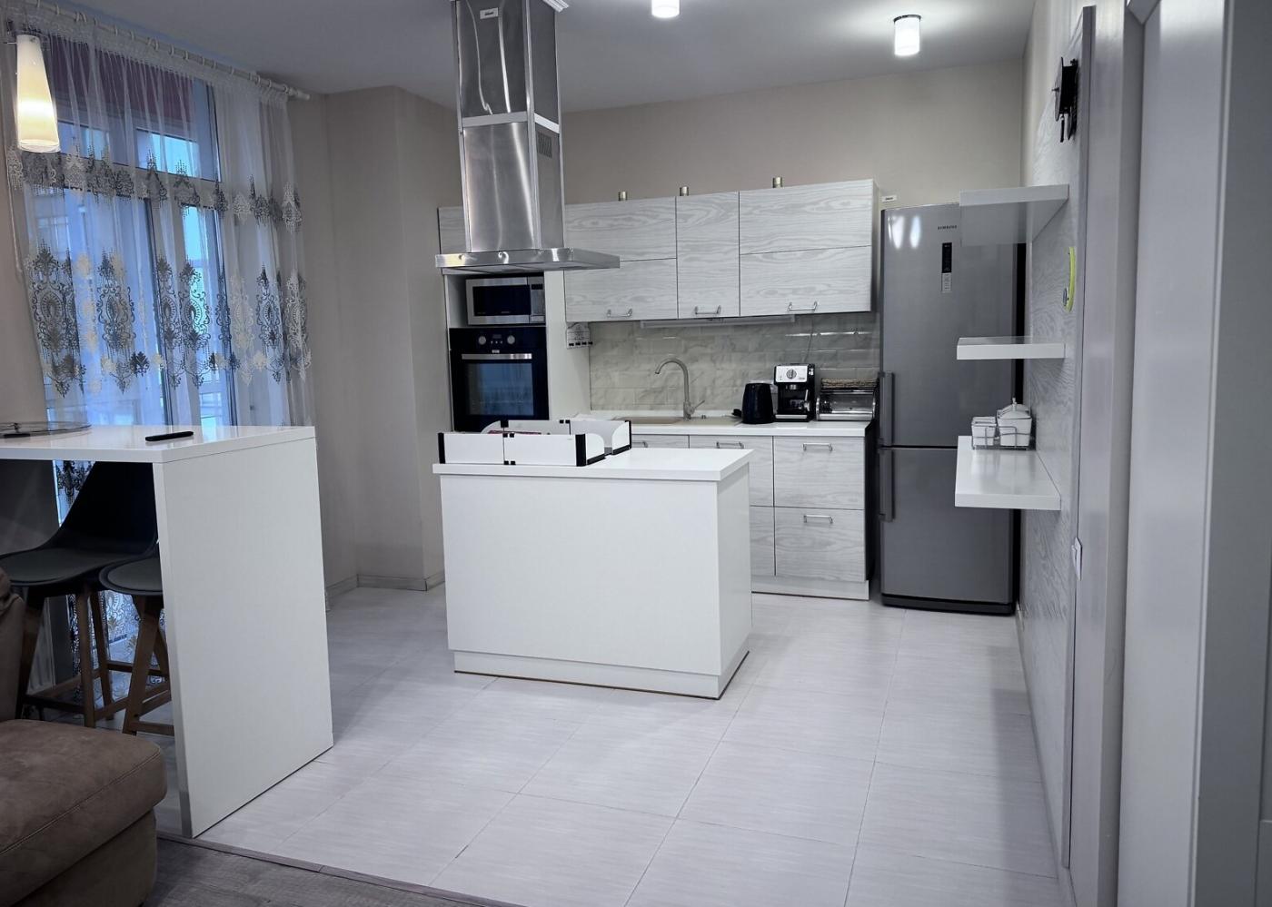 Квартира знаходиться на 4 поверсі і є дуже теплою. Вона має два великих балкони та повністю обладнана технікою у відмінному стані. Кухня — справжня гордість: вона виконана на замовлення з італійського МДФ та оснащена фурнітурою Blum.