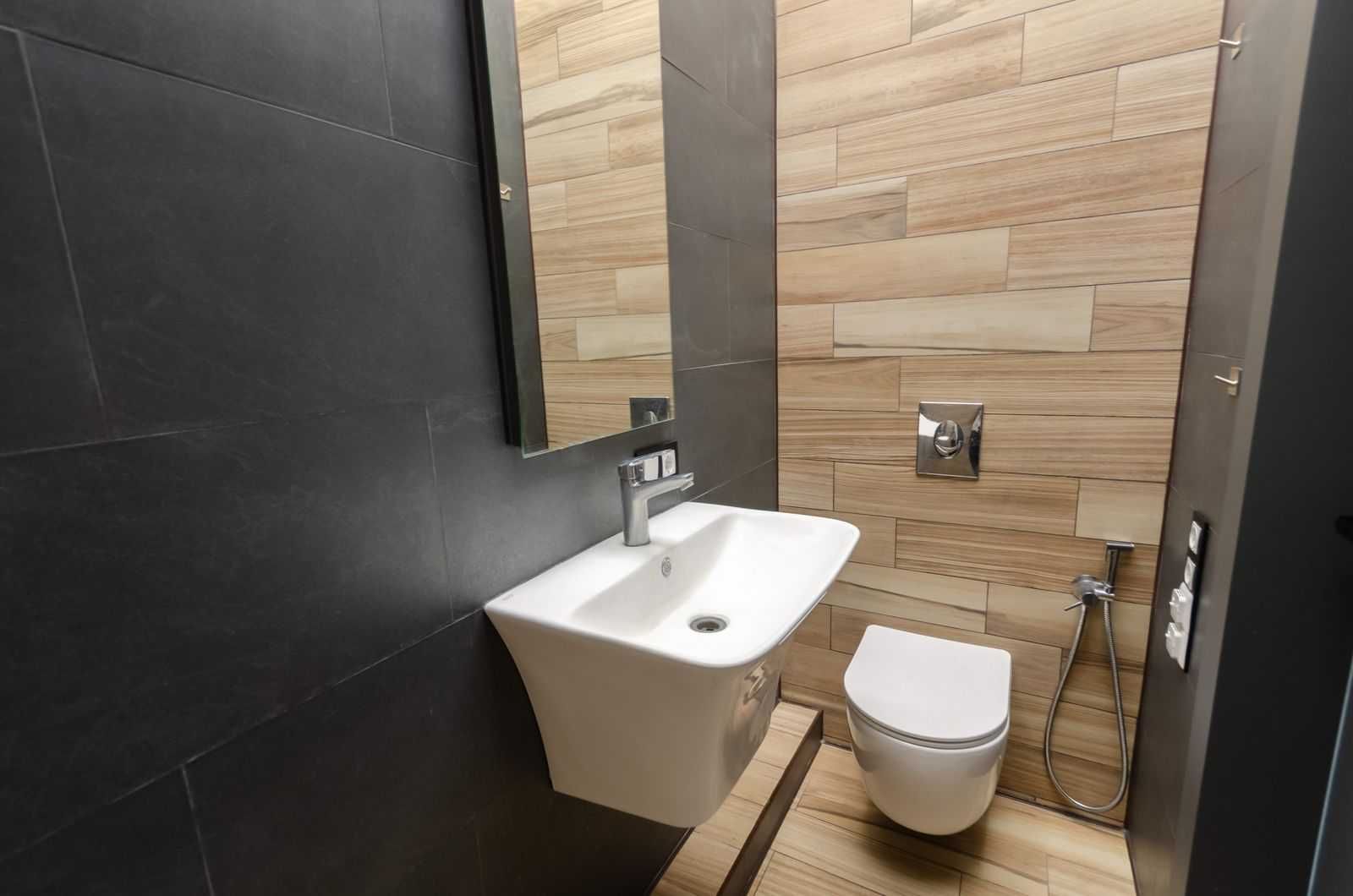 На первом этаже - прихожая с большим встроенным шкафом, студия зонированная на кухню и гостиную, гостевой санузел с душем, кладовка под лестницей, терраса.