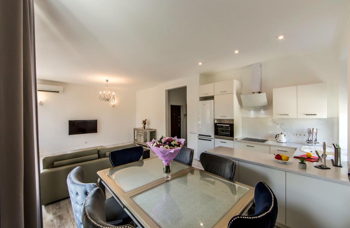 Квартира оформлена у сучасному стилі: дизайнерський ремонт виконано з використанням новітніх технологій і якісних матеріалів.