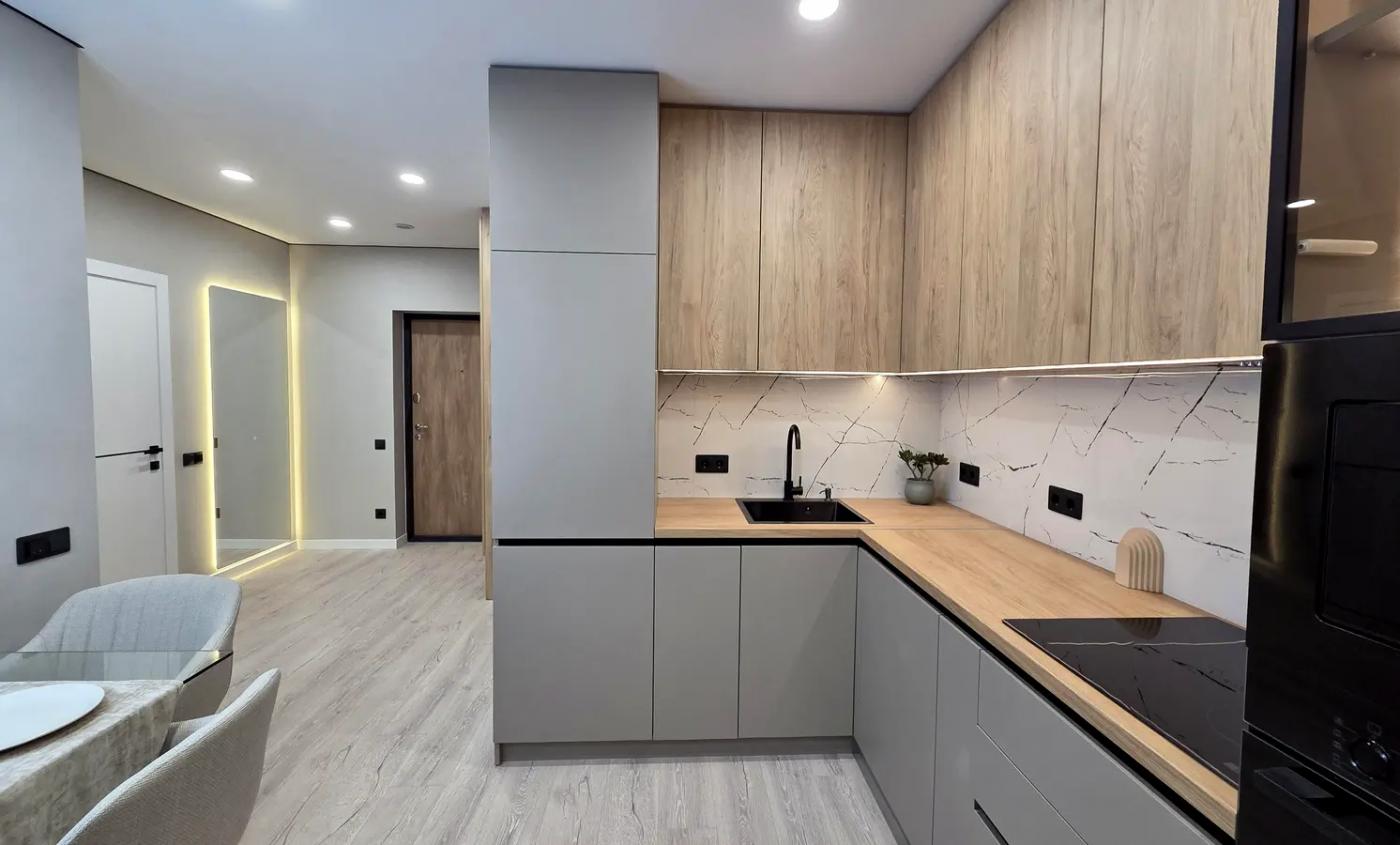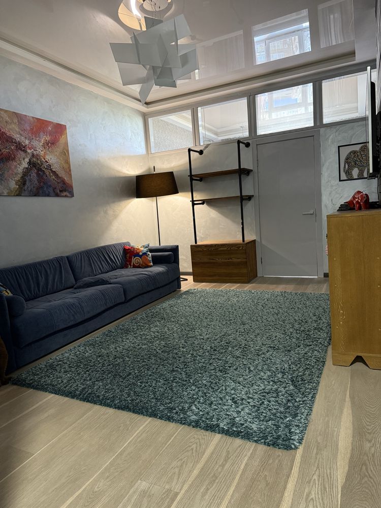 Висота стелі тут становить 3,2 метра, що додає об'єму та світла. Санвузол окремий, обладнаний ванною та повністю обкладений плиткою.