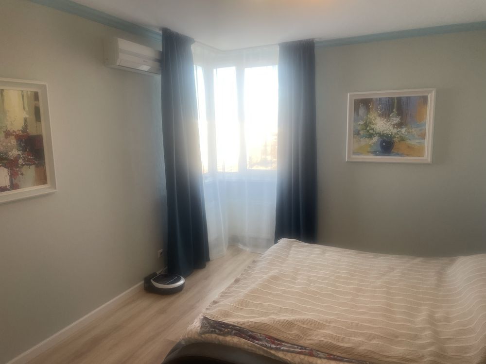 Квартира перебуває у гарному стані та має необхідне меблювання. У кімнатах на підлозі укладений ламінат, встановлені металопластикові вікна.
