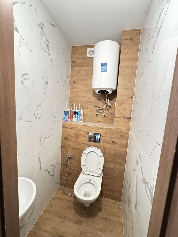 Тут облаштовано два окремі санвузли: ванна кімната з умивальником та туалет із біде. Житло укомплектоване м’якими меблями, має гардеробну та простору лоджію 5 м². Встановлено якісні вхідні двері.