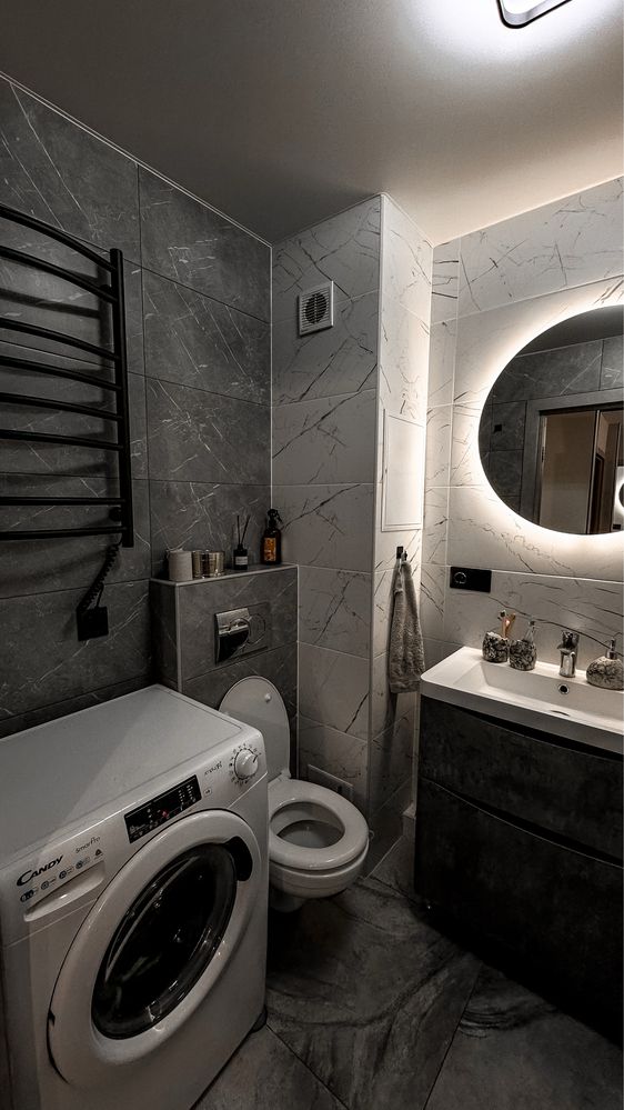 У квартирі залишається вся брендова техніка (крім ТБ): сенсорна варильна поверхня, витяжка, духова шафа, холодильник, а також посудомийна та пральна машини з функцією сушіння (обидві з Wi-Fi).