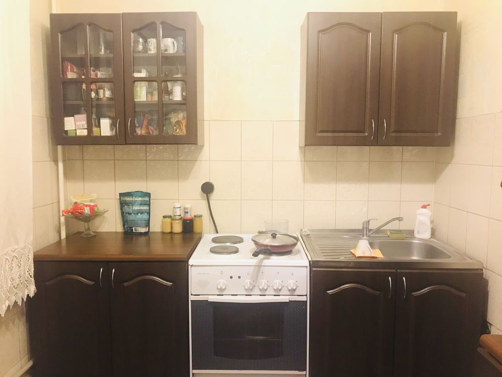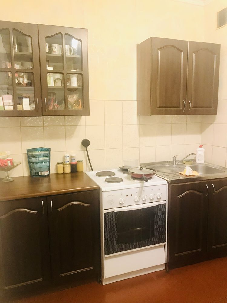 Велика кімната правильної форми та функціональна кухня. На підлозі укладено лінолеум. Санвузол роздільний, є ванна.