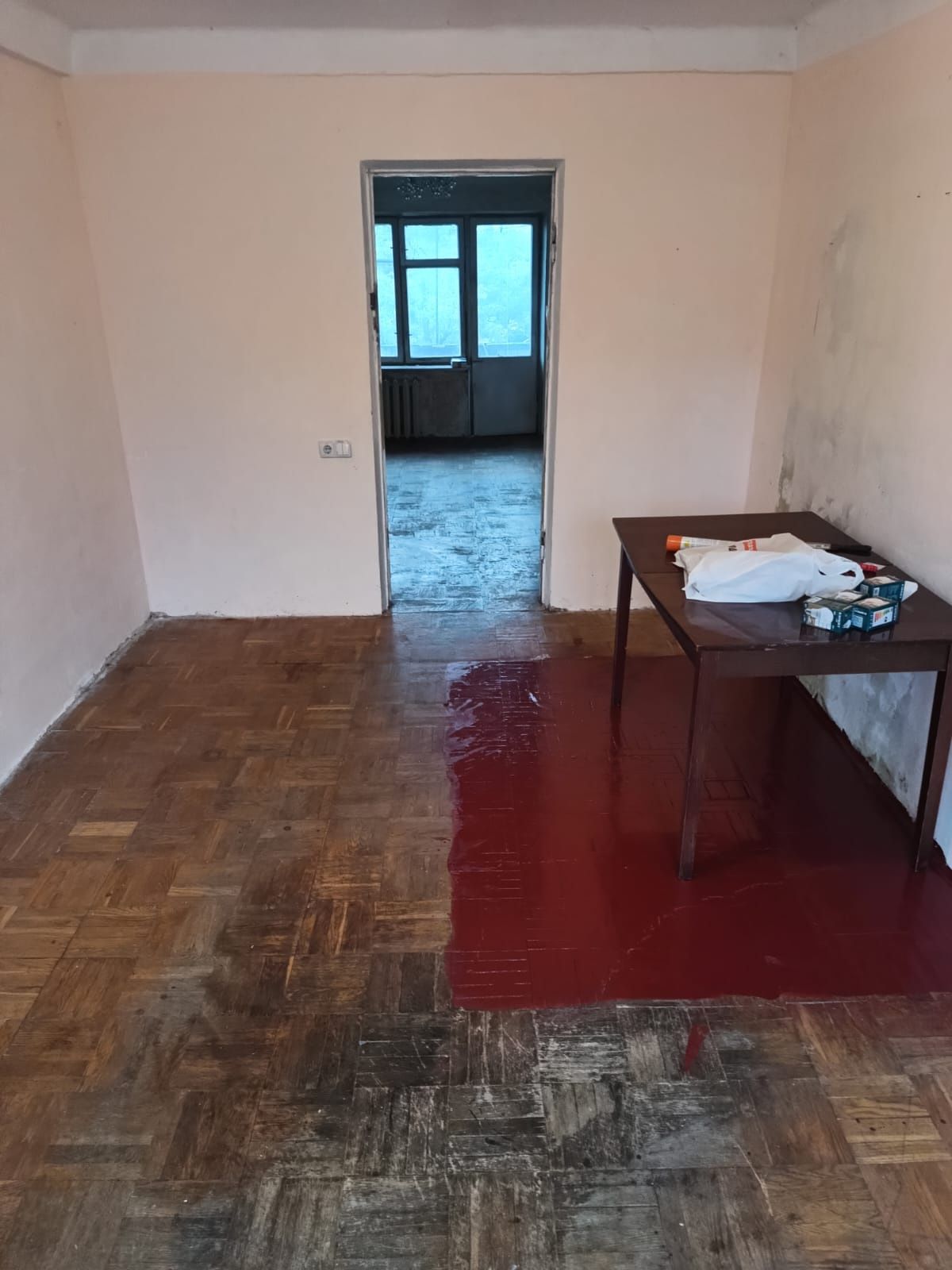 Стан — задовільний: на підлозі паркет, дерев’яні вікна старого зразка. Помешкання потребує оновлення, але має зручне планування і достатньо простору для реалізації ваших дизайнерських ідей.
