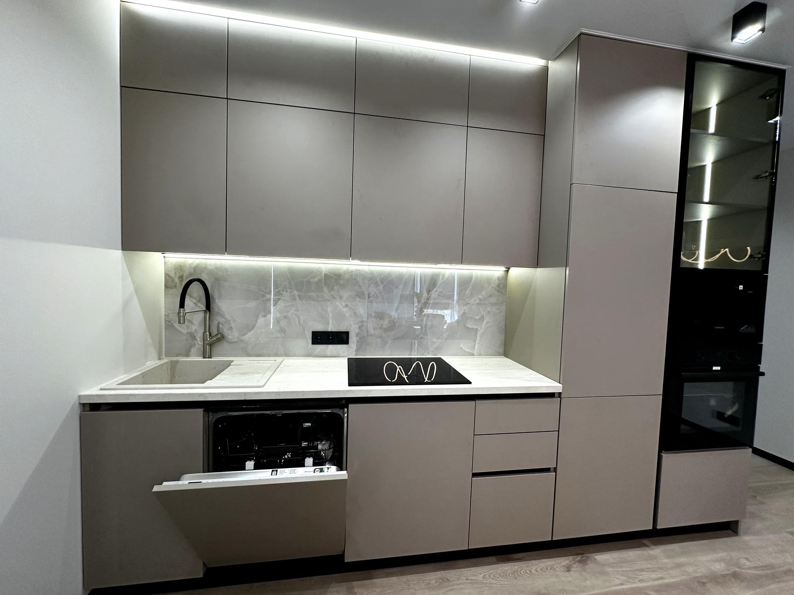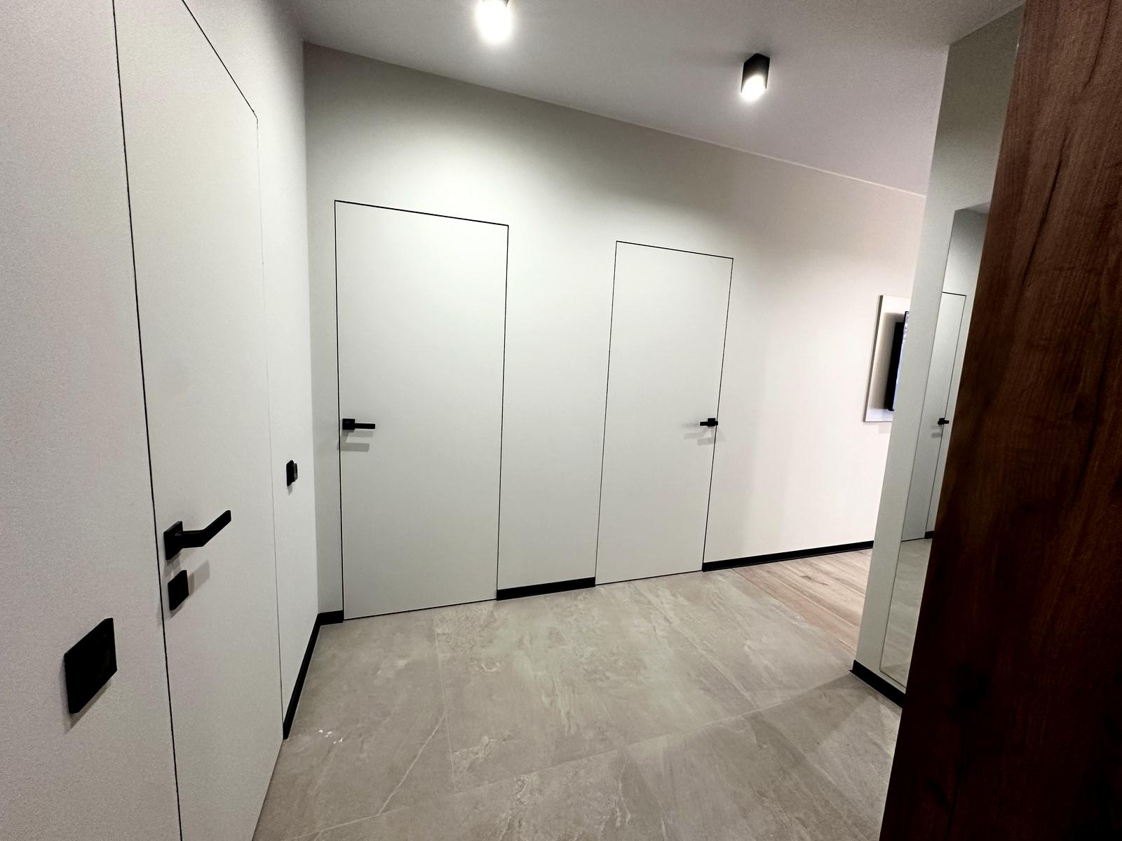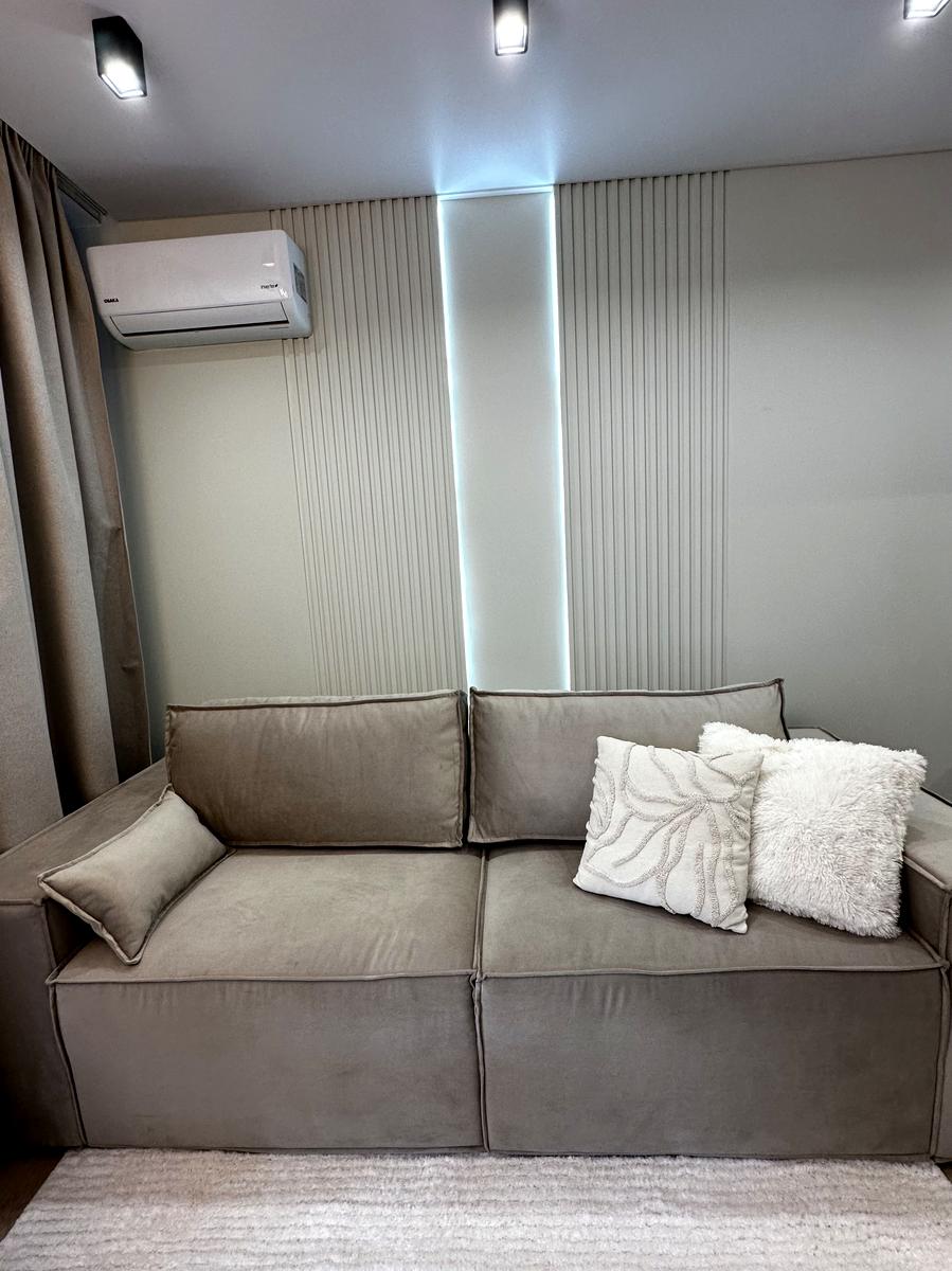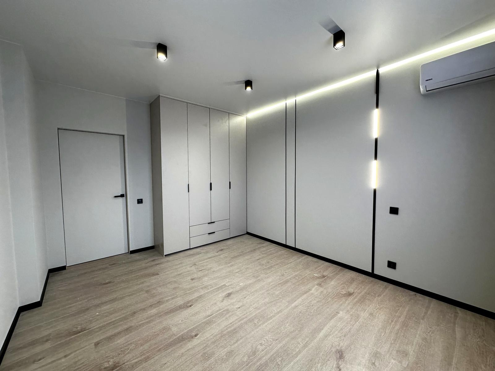 У помешканні щойно завершено сучасний ремонт, виконаний у нейтральній колірній гамі.