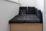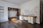 Усі вбудовані меблі виконані з безпечного ДСП «Egger» E0, шафа оснащена системою «Starke slim», а висувні ящики — «Vibo».
