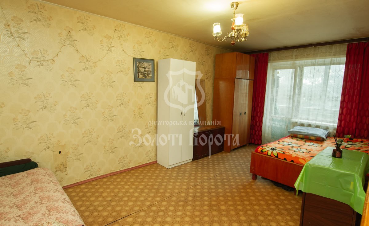 Вікна виходять у доглянутий двір із дитячим майданчиком, а сама квартира має балкон, металопластикові вікна та велику кімнату — усе для затишного проживання.