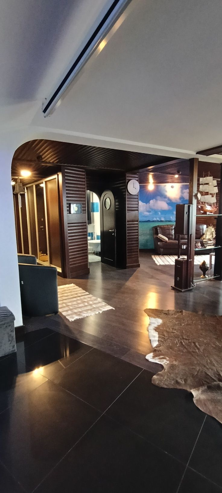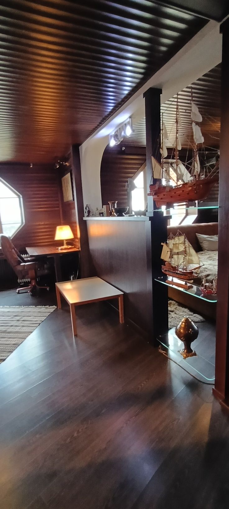 Оселя має унікальний дизайнерський стиль — інтер’єр стилізований під корабель, а стіни обшиті справжнім ясенем, виконаним вручну. Таких рішень на ринку просто немає.