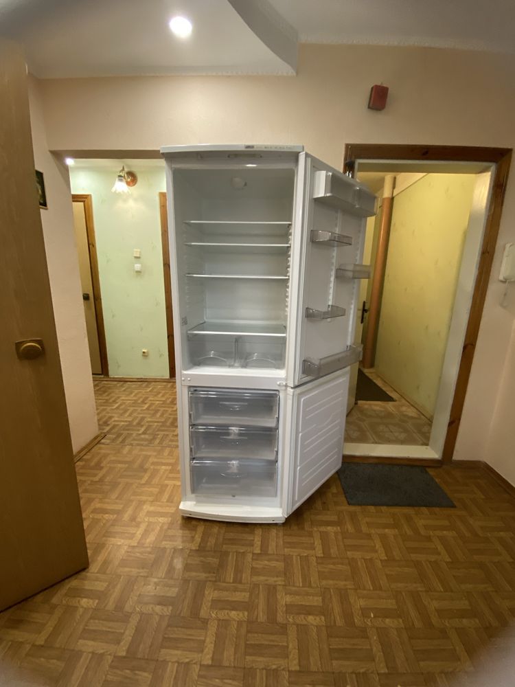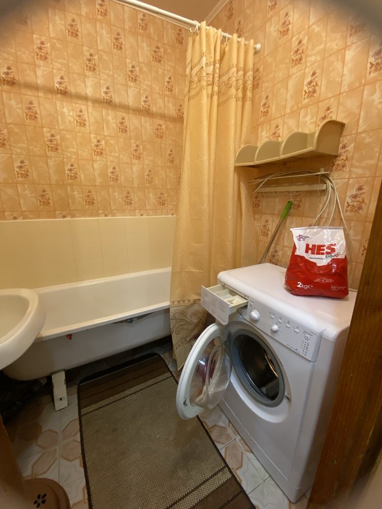 Зараз квартира використовується як двокімнатна. Є два засклені балкони, під одним з яких можна облаштувати погріб. Санвузол — роздільний. Стан — косметичний ремонт, чисто, тепло, зручно.