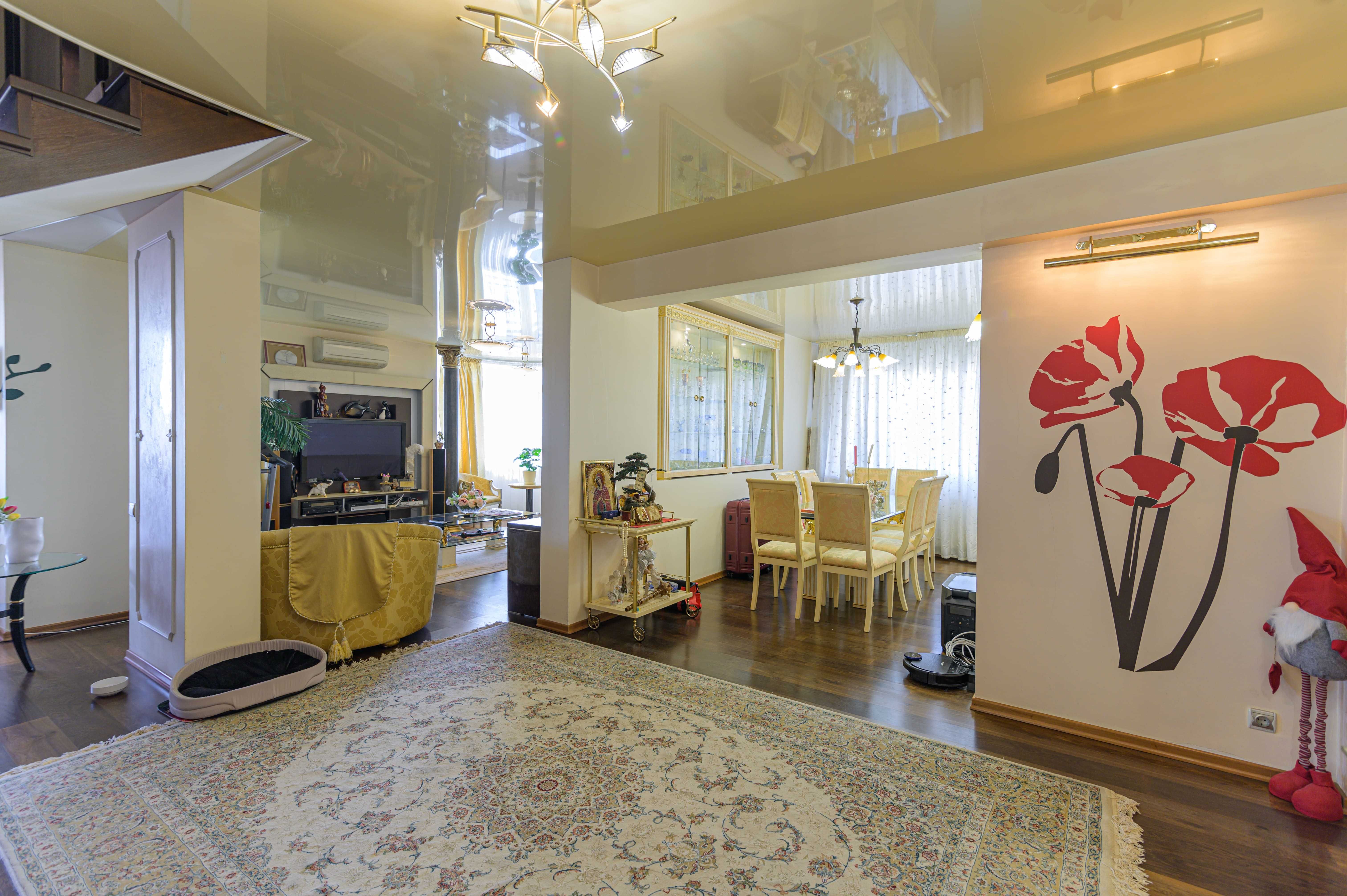 Ремонт виконаний із найякісніших матеріалів: використано натуральний мармур і цінні породи дерева, а також меблі від найкращих світових виробників, таких як Rimadesio, Molteni, Cassina та інші.