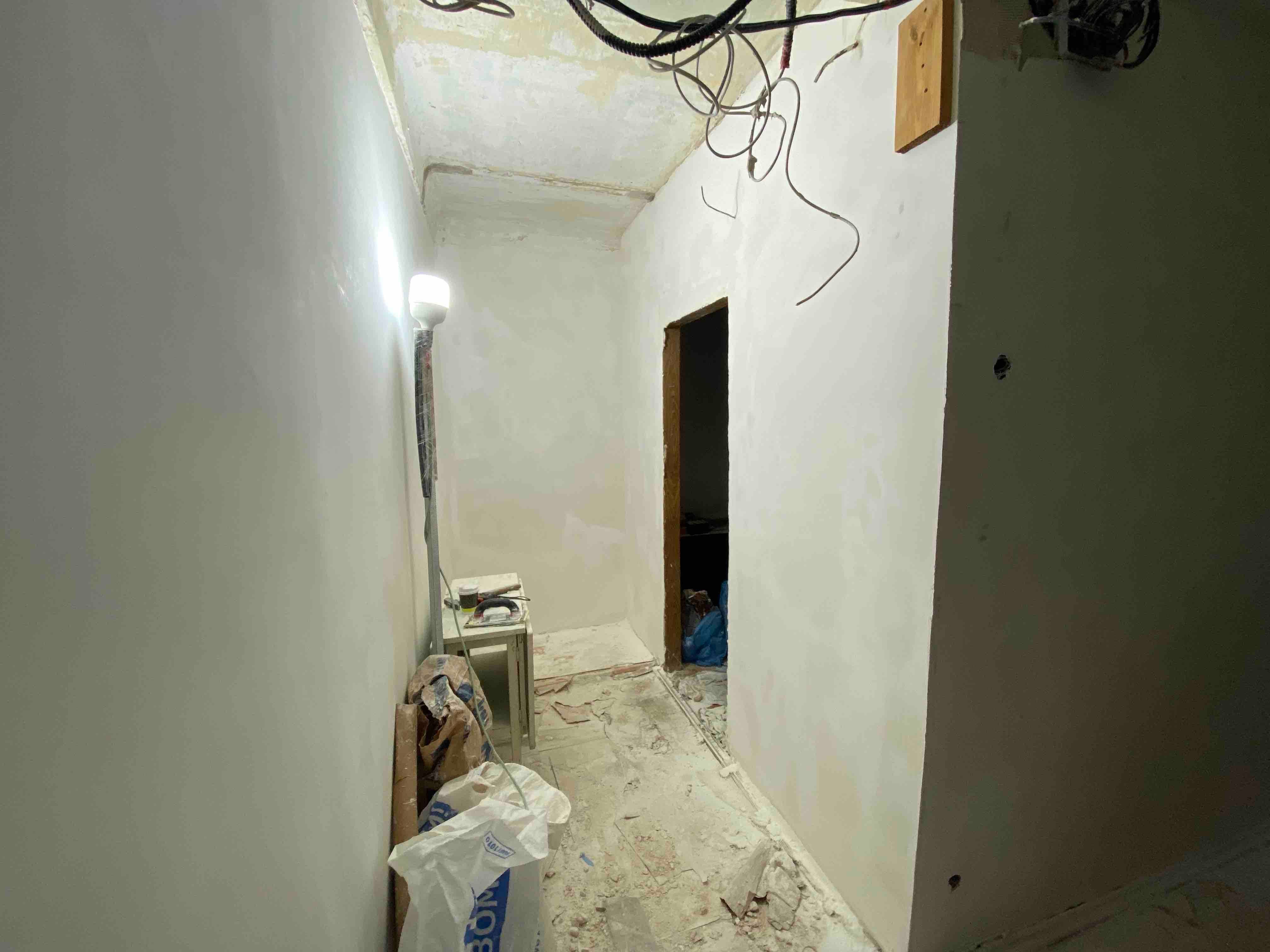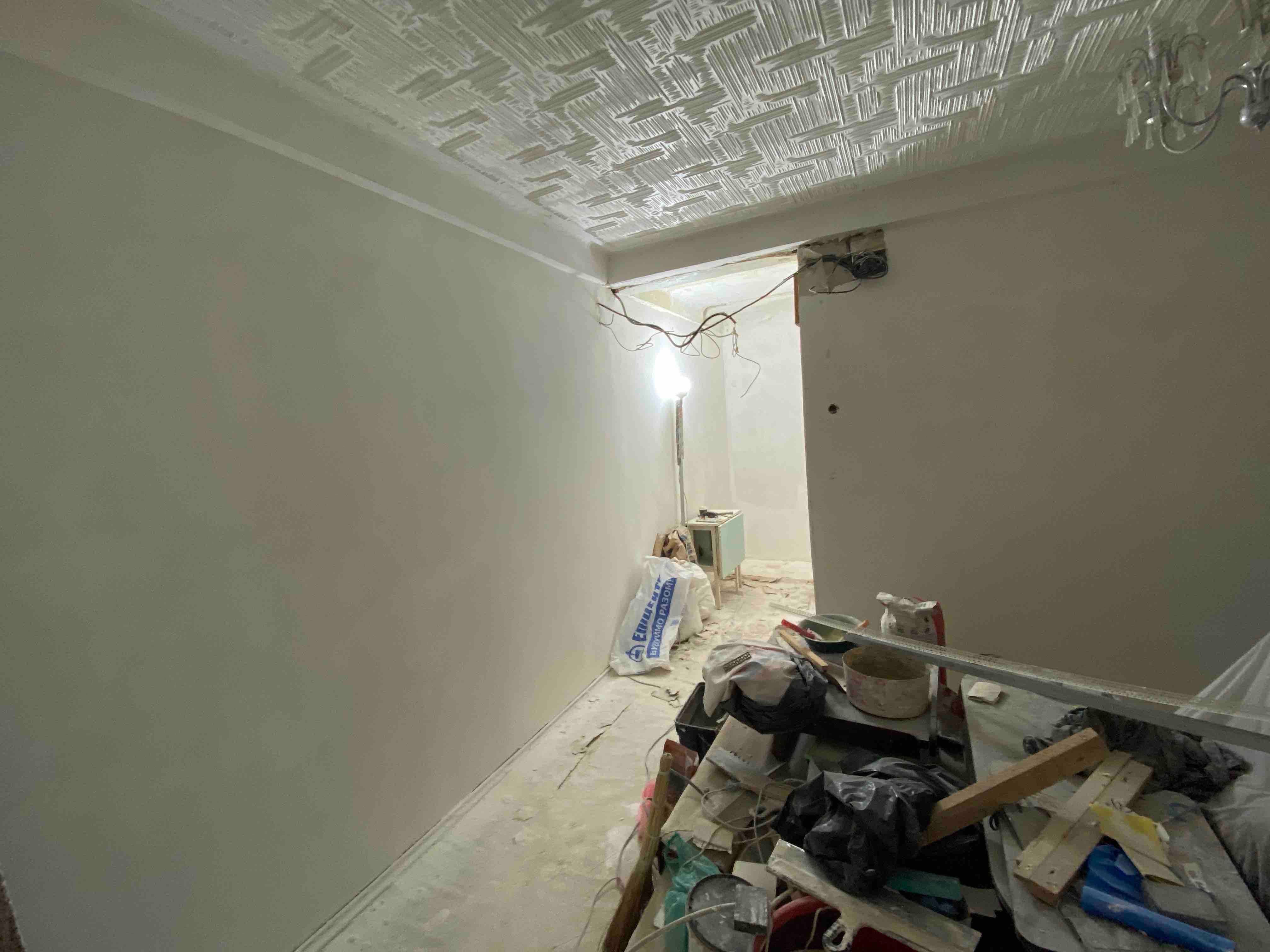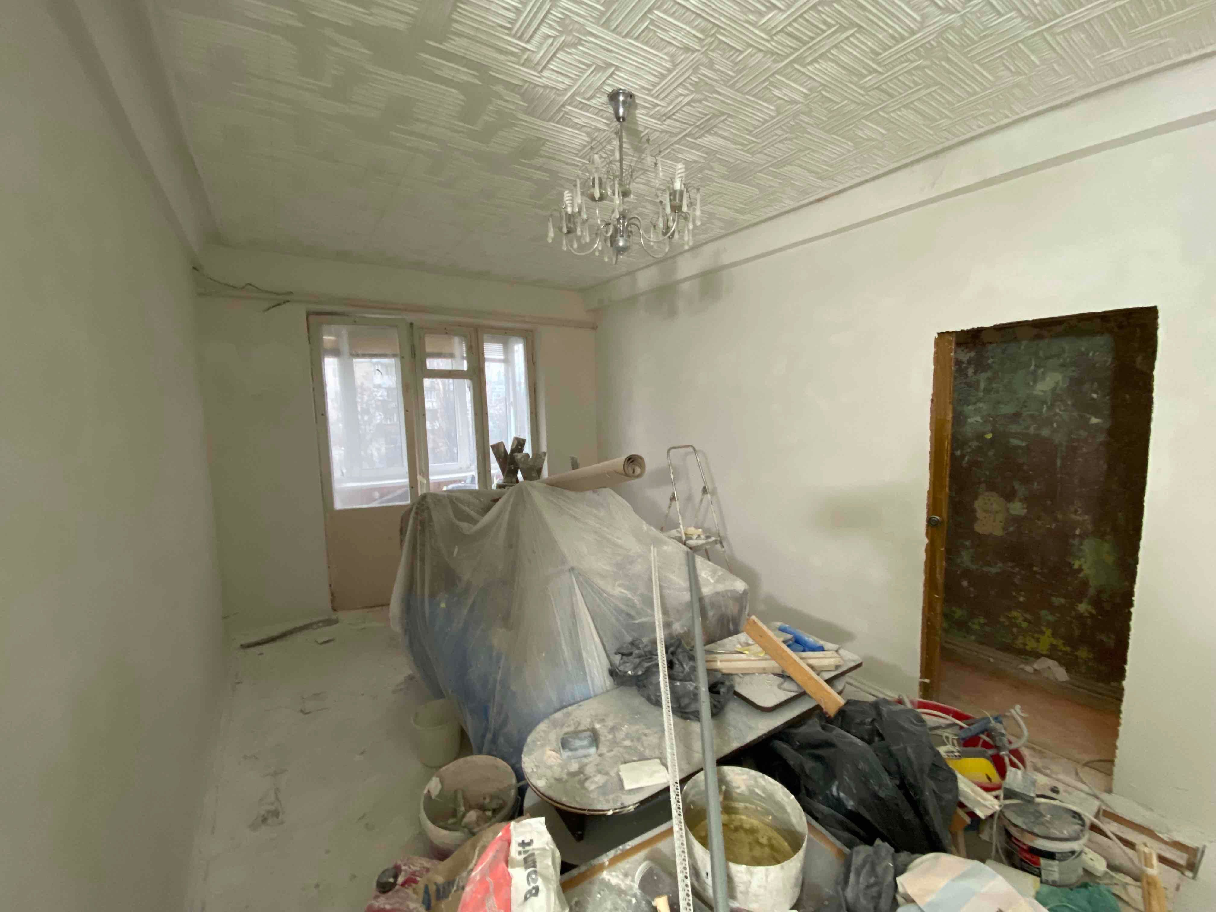 Простір перебуває в стані капітального ремонту: стіни вже поштукатурені, готові до фарбування або поклейки шпалер, що дозволяє новому власнику реалізувати власне бачення інтер’єру без зайвих витрат на демонтаж.