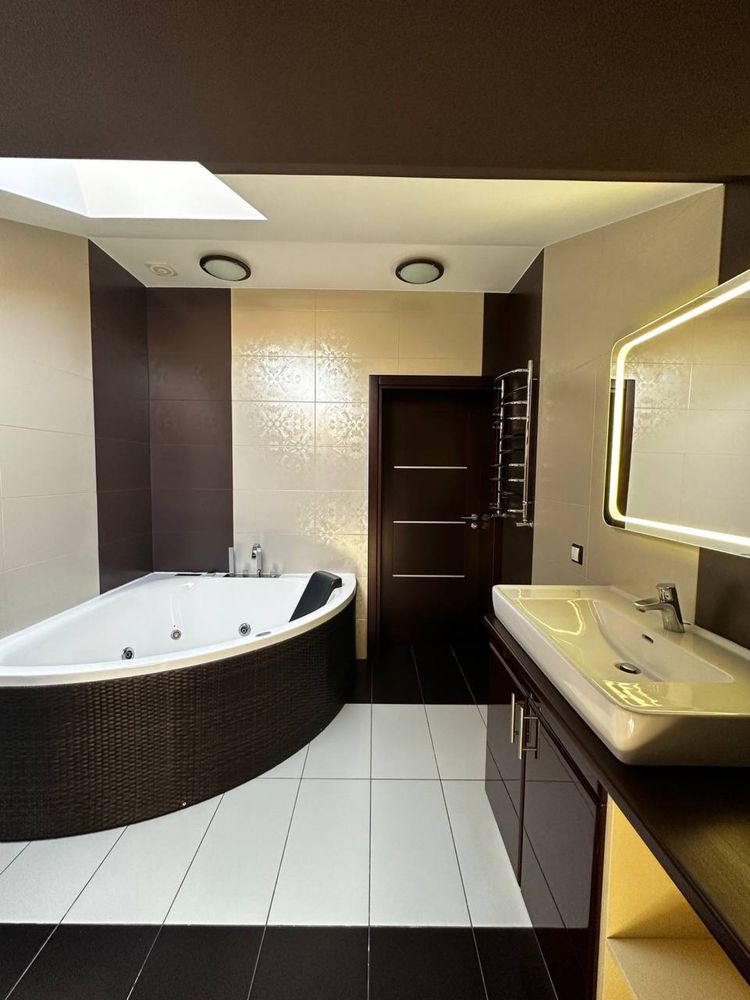 На другому — дві окремі спальні та просторий санвузол із джакузі, що створює атмосферу домашнього релаксу. Ремонт виконано студією LavrovDesign у сучасному стилі, з акцентом на якість матеріалів та естетику. Оселя повністю мебльована, всі елементи інтер’єру підібрані з урахуванням стилістичної цілісності.