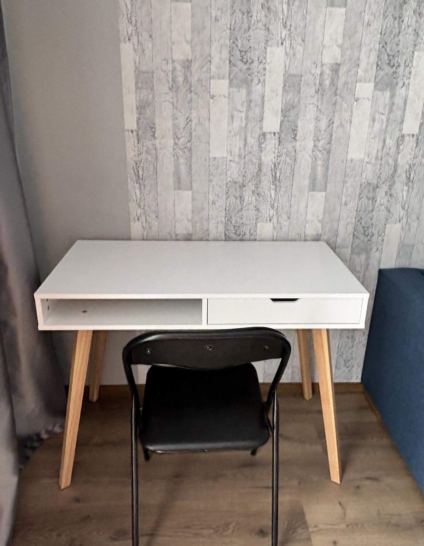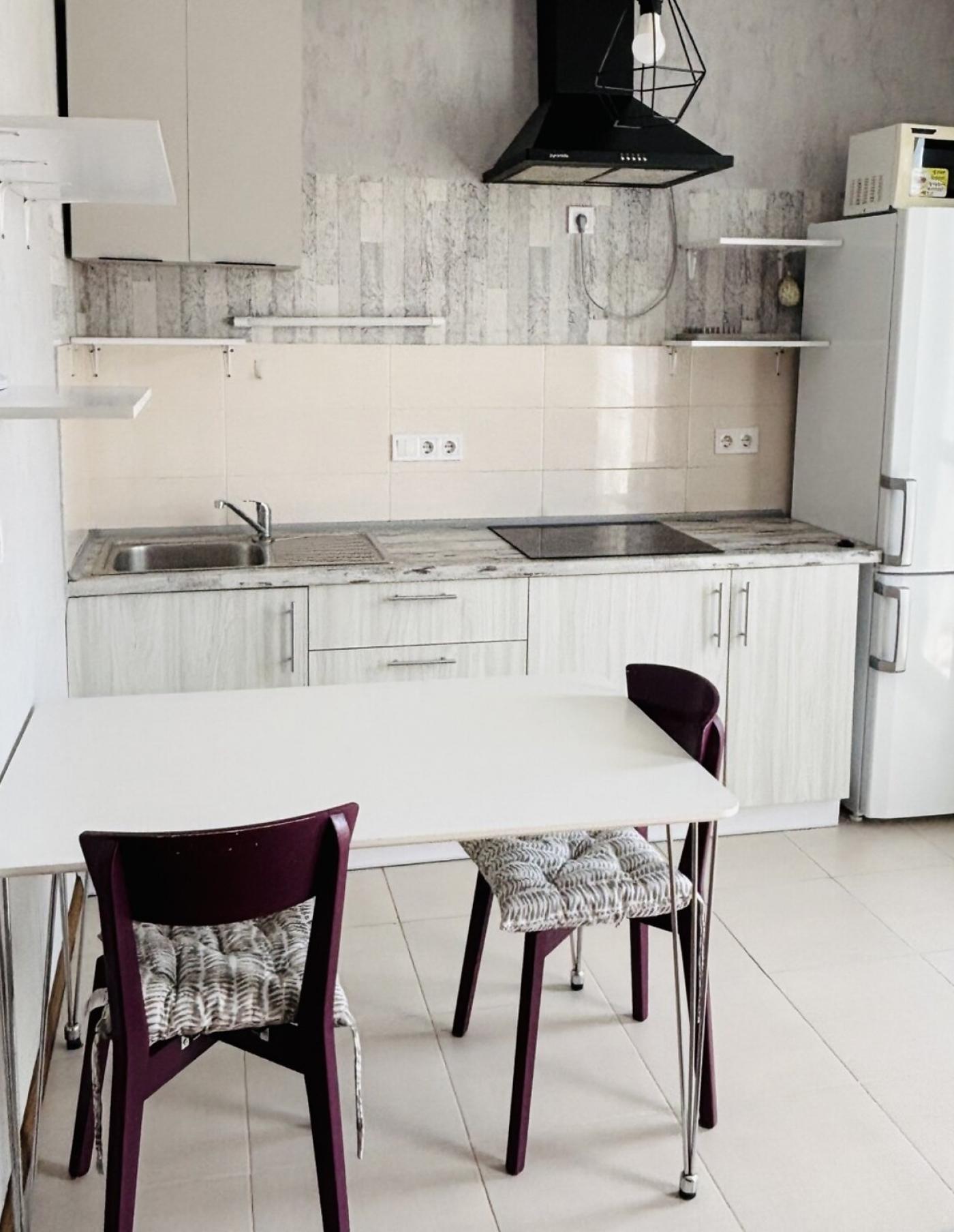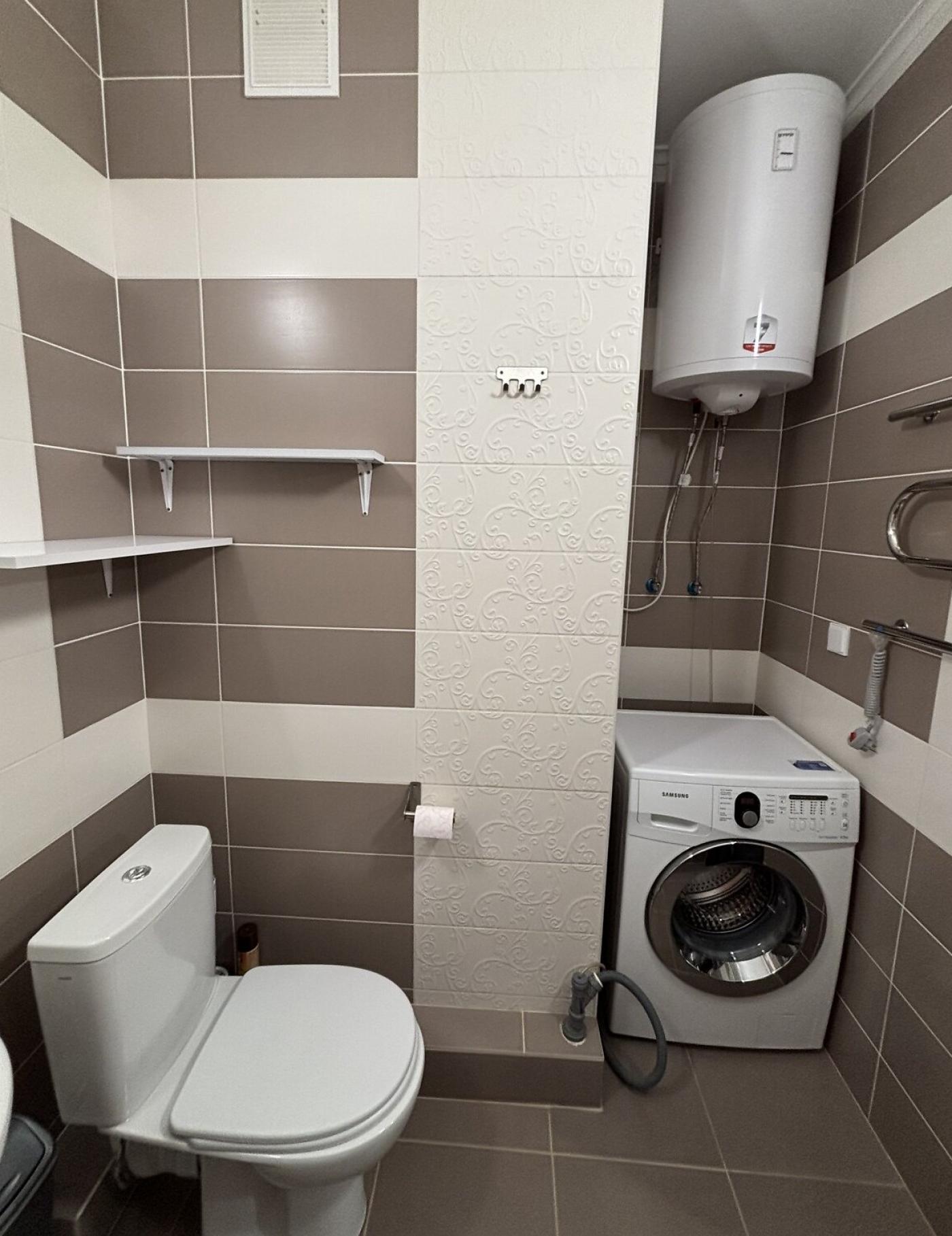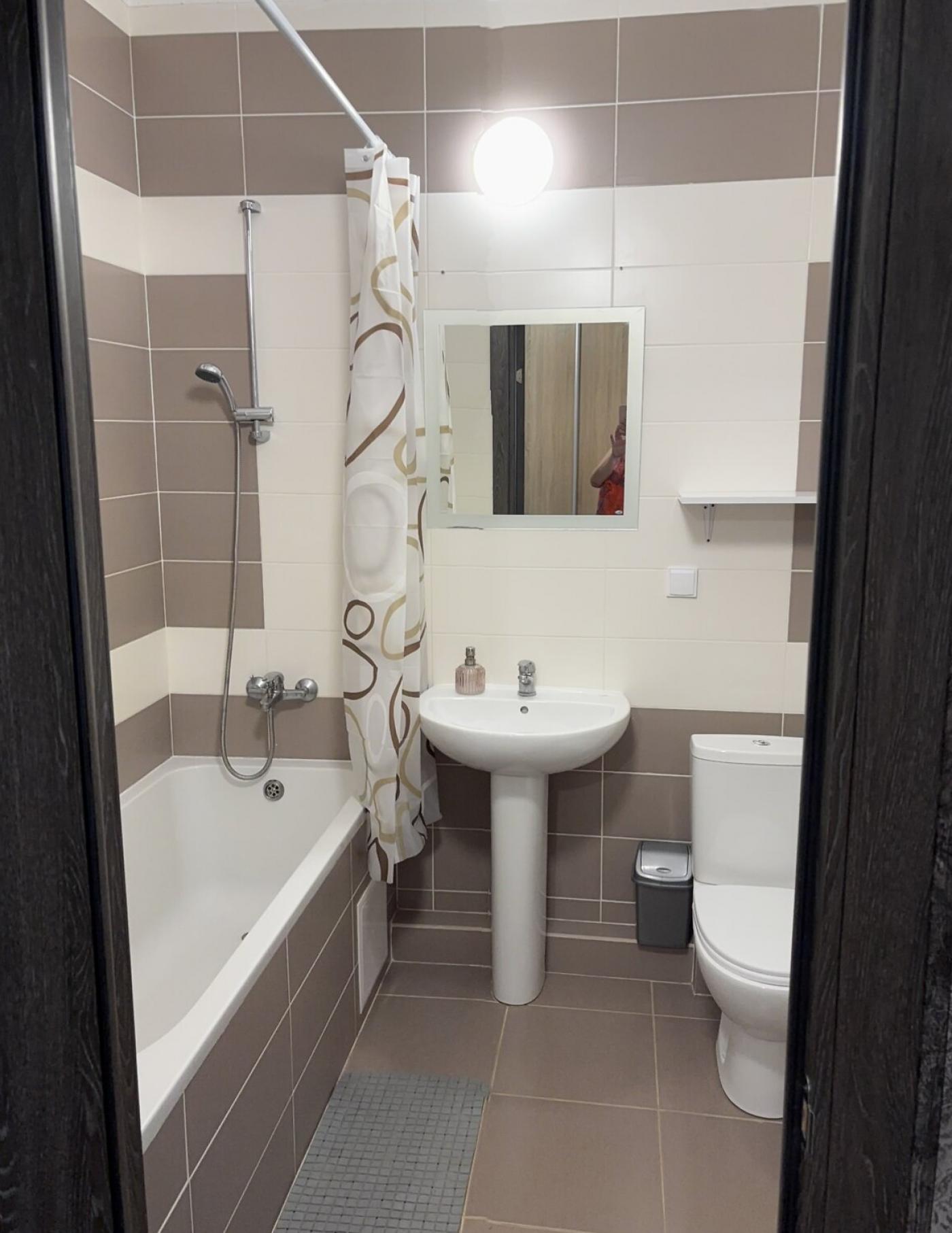 У квартирі виконаний якісний ремонт: на стінах — шпалери, на підлозі — ламінат. Простора кімната-студія (19 м2) повністю укомплектована всіма необхідними меблями та технікою, включаючи повноцінний двоспальний диван, письмовий стіл, кухонні меблі, новий бойлер та пральну машину. Також є просторий балкон та великий санвузол (4,5 м2).