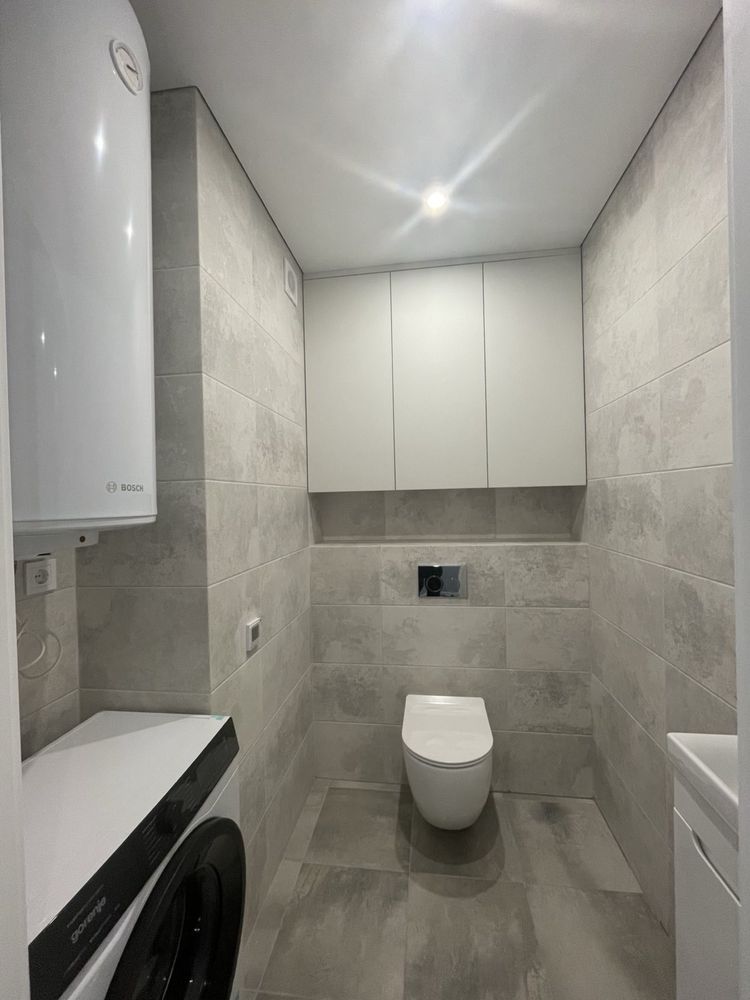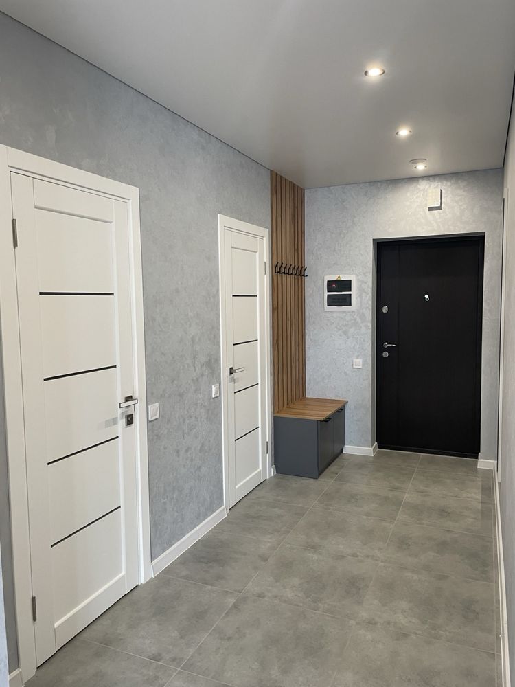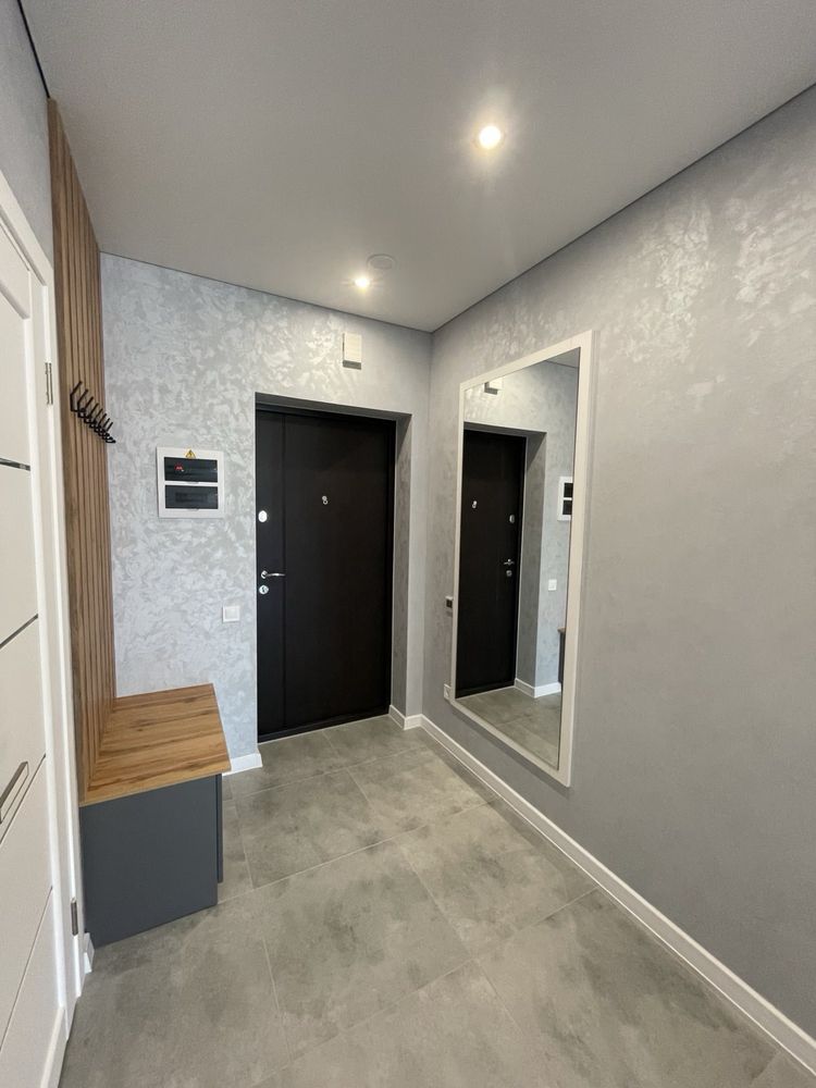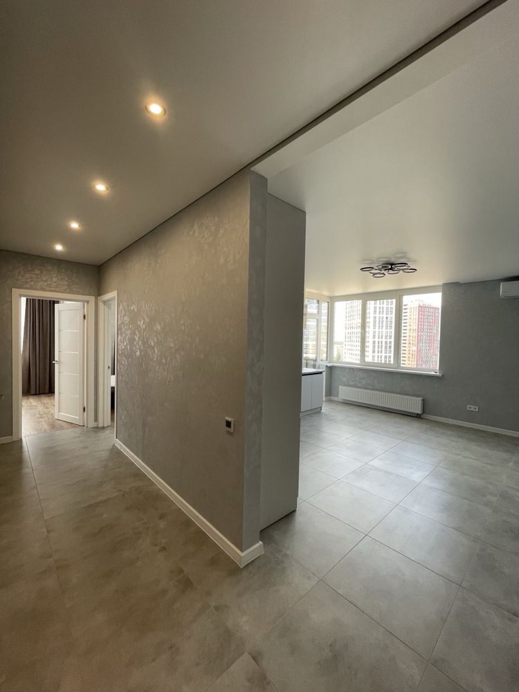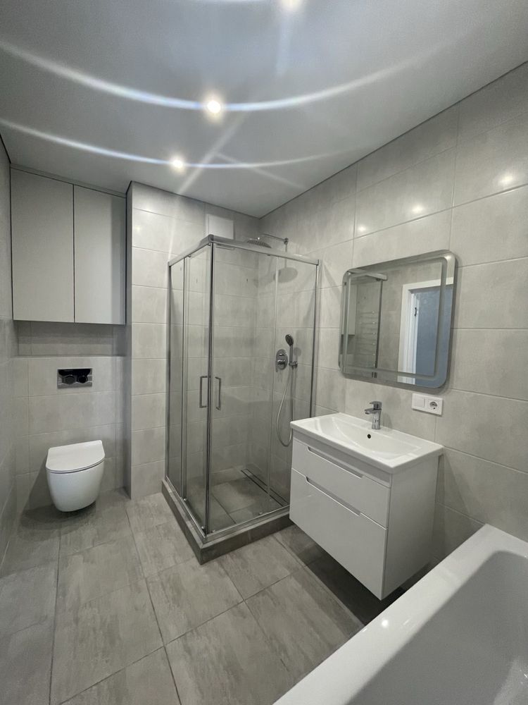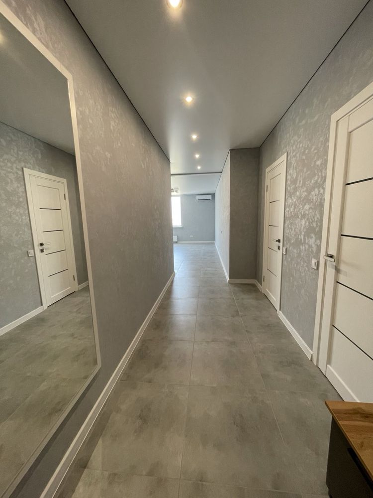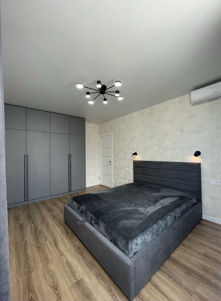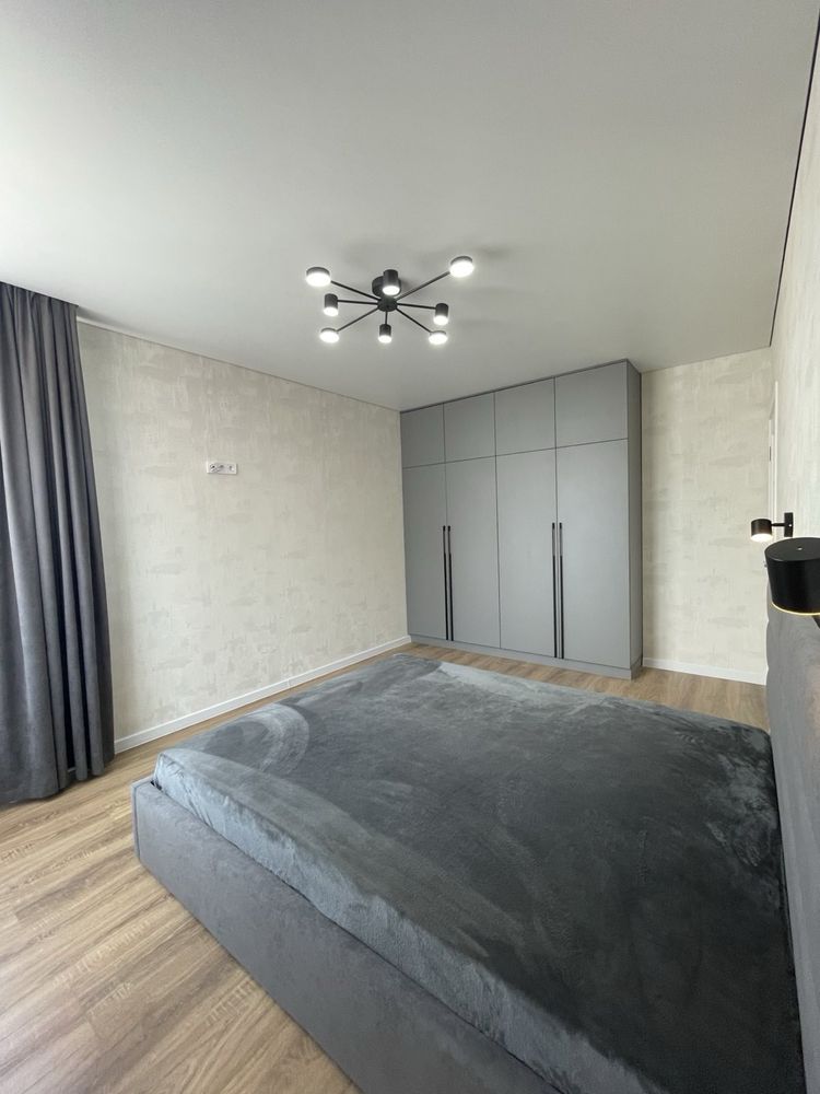 Квартира має високоякісний ремонт, виконаний з використанням сучасних матеріалів. Продумане планування включає дві окремі спальні, простору кухню-вітальню (20 м2), два санвузли та гардеробну кімнату.