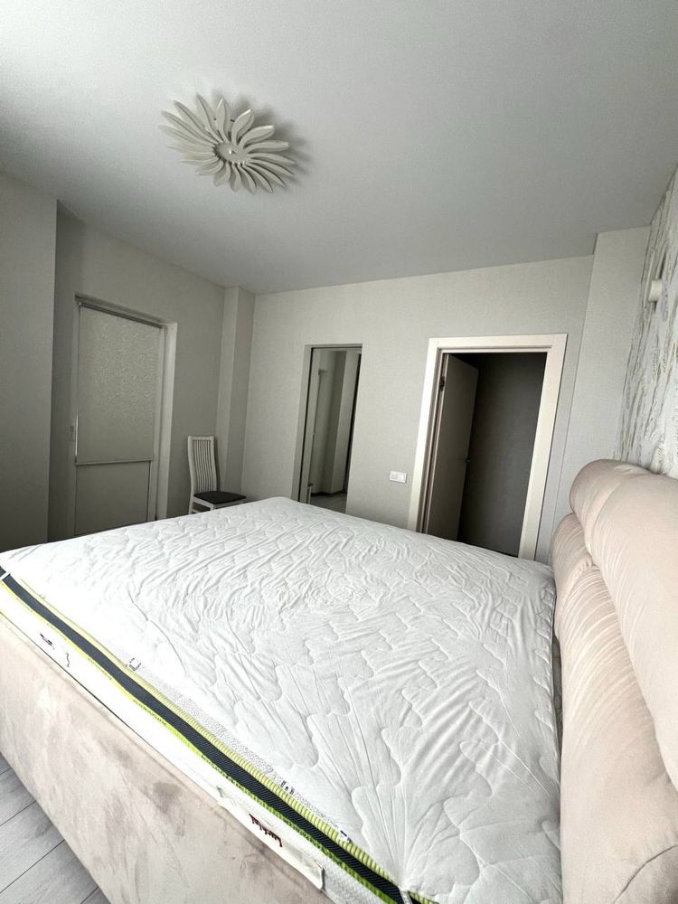 Квартира має світле та тепле планування: кухня та вітальня об'єднані в одну простору зону. Вона повністю укомплектована меблями та технікою.