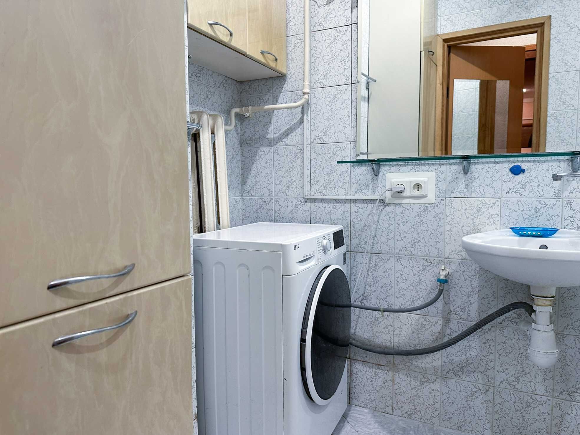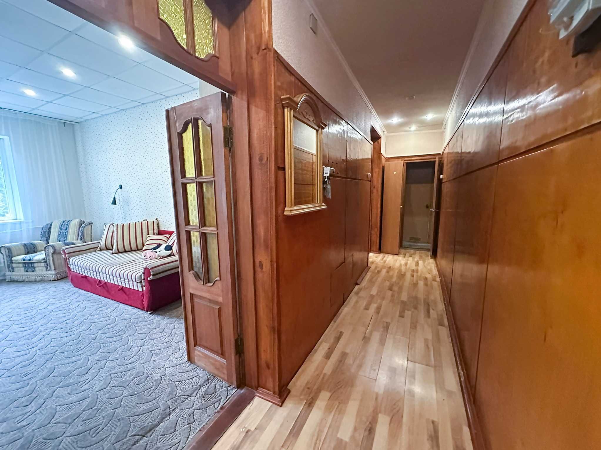На підлозі — ламінат і килимове покриття, стіни — шпалери, кухня — з плитковим покриттям. Квартира продається з усіма меблями та побутовою технікою — готове рішення для життя без додаткових витрат.