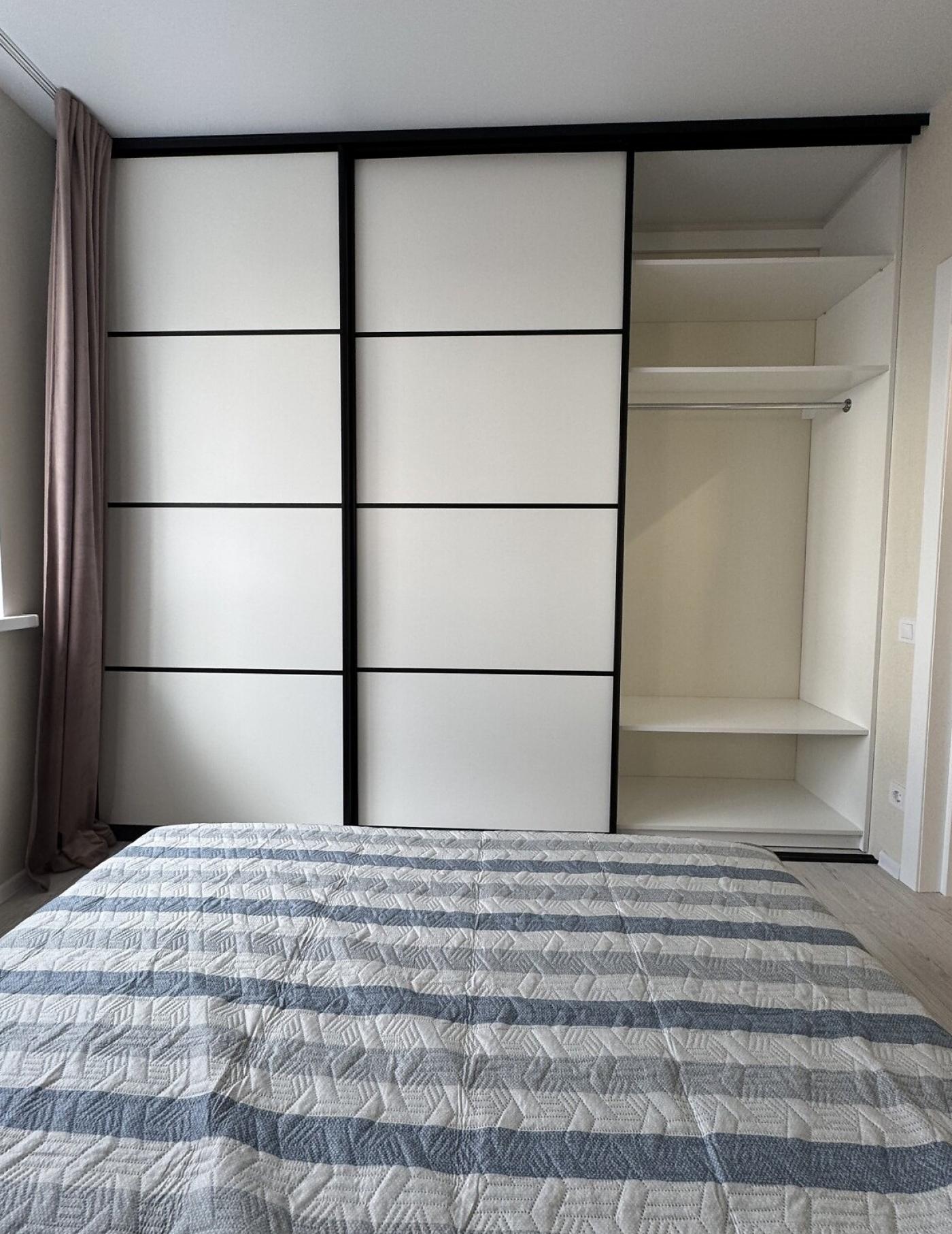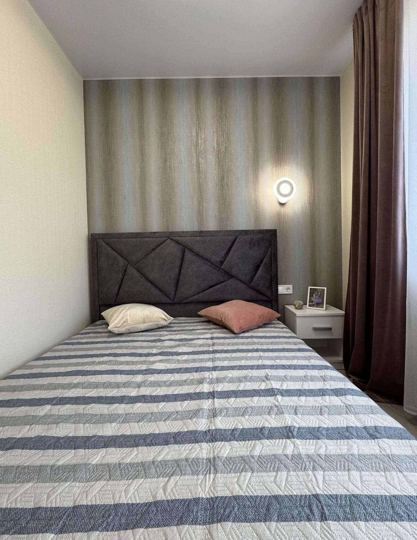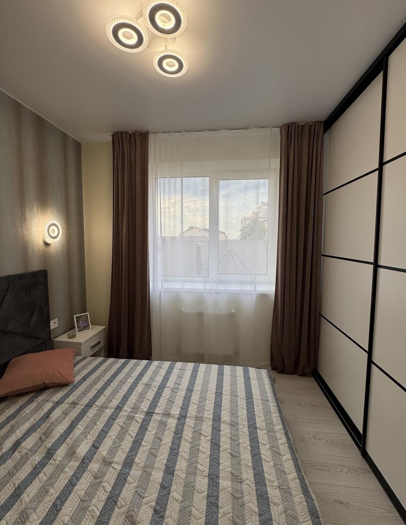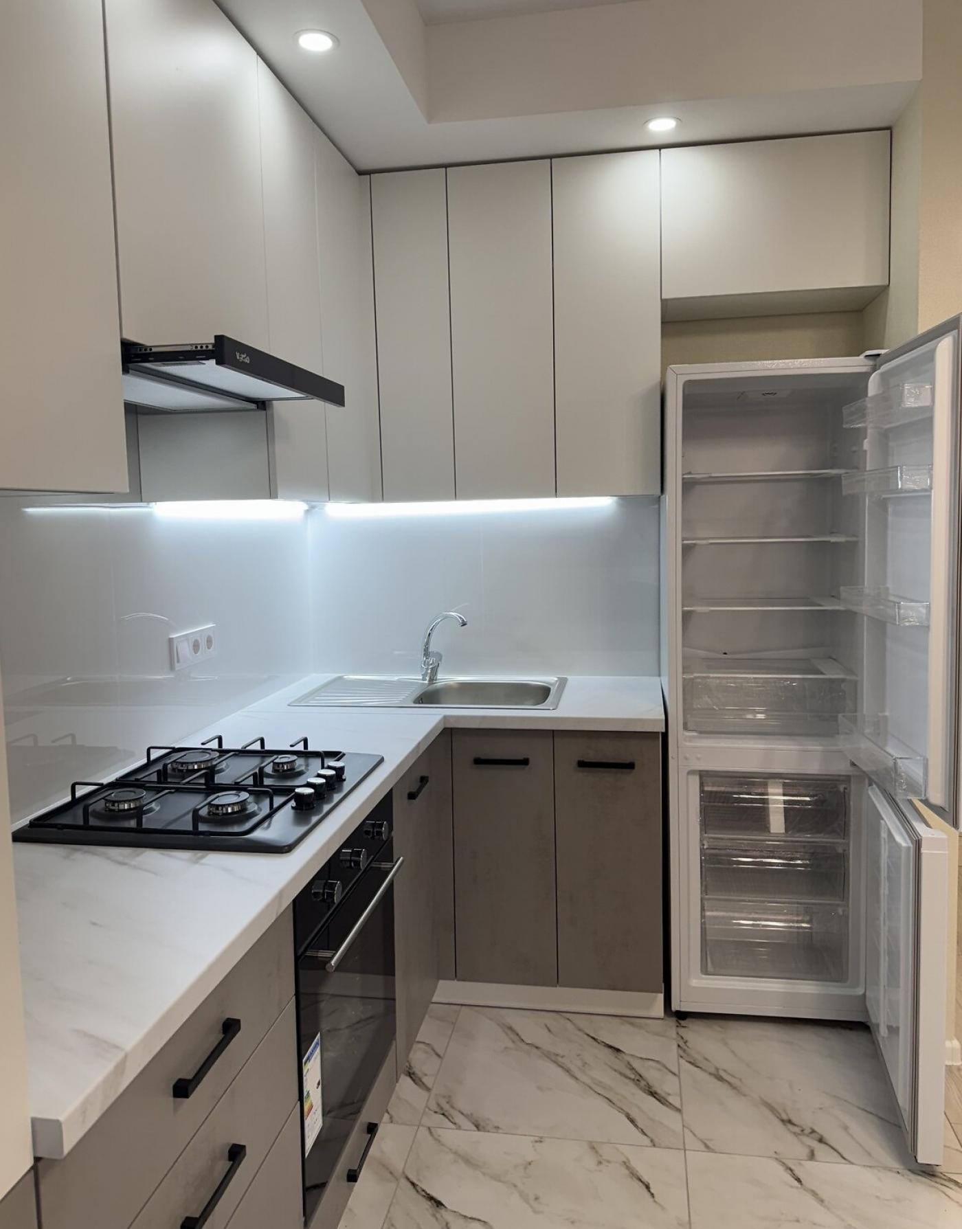 Житло має зручне планування з великою кухнею-вітальнею та окремою спальнею з вікном і дверима. Квартира повністю укомплектована всіма необхідними меблями та технікою, включаючи вбудовану кухню з побутовою технікою, пральну машину та кондиціонер.