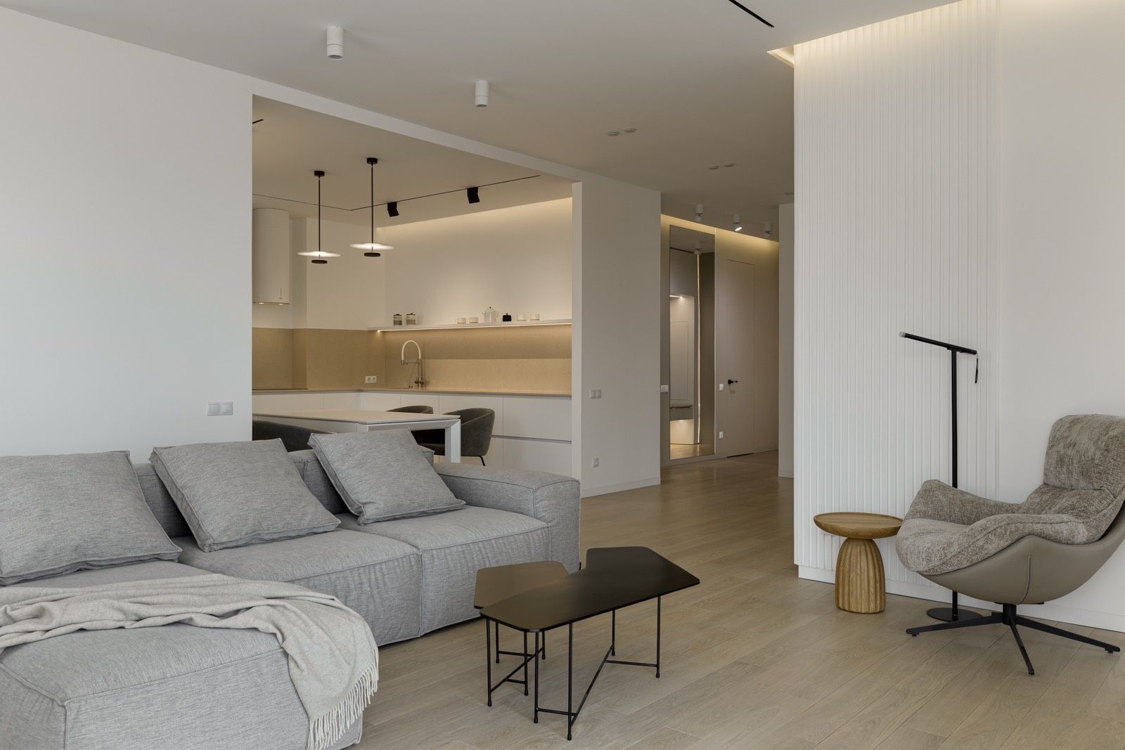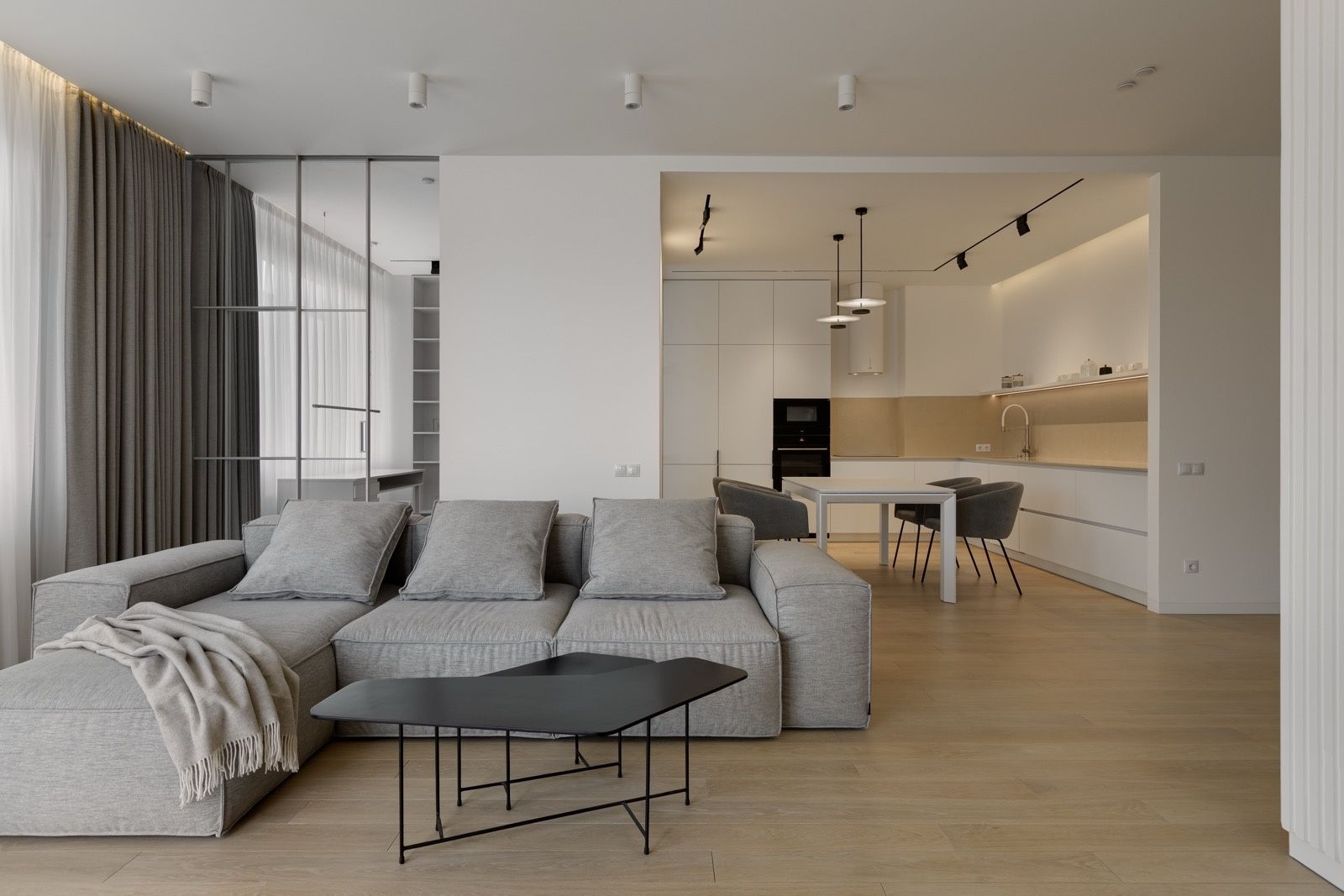 Оселя розташована на 5 поверсі 23-поверхового будинку. Квартира вирізняється функціональністю та простором, адже планування включає три окремі спальні, велику кухню-вітальню, два санвузли, гардеробну та окрему пральну кімнату.