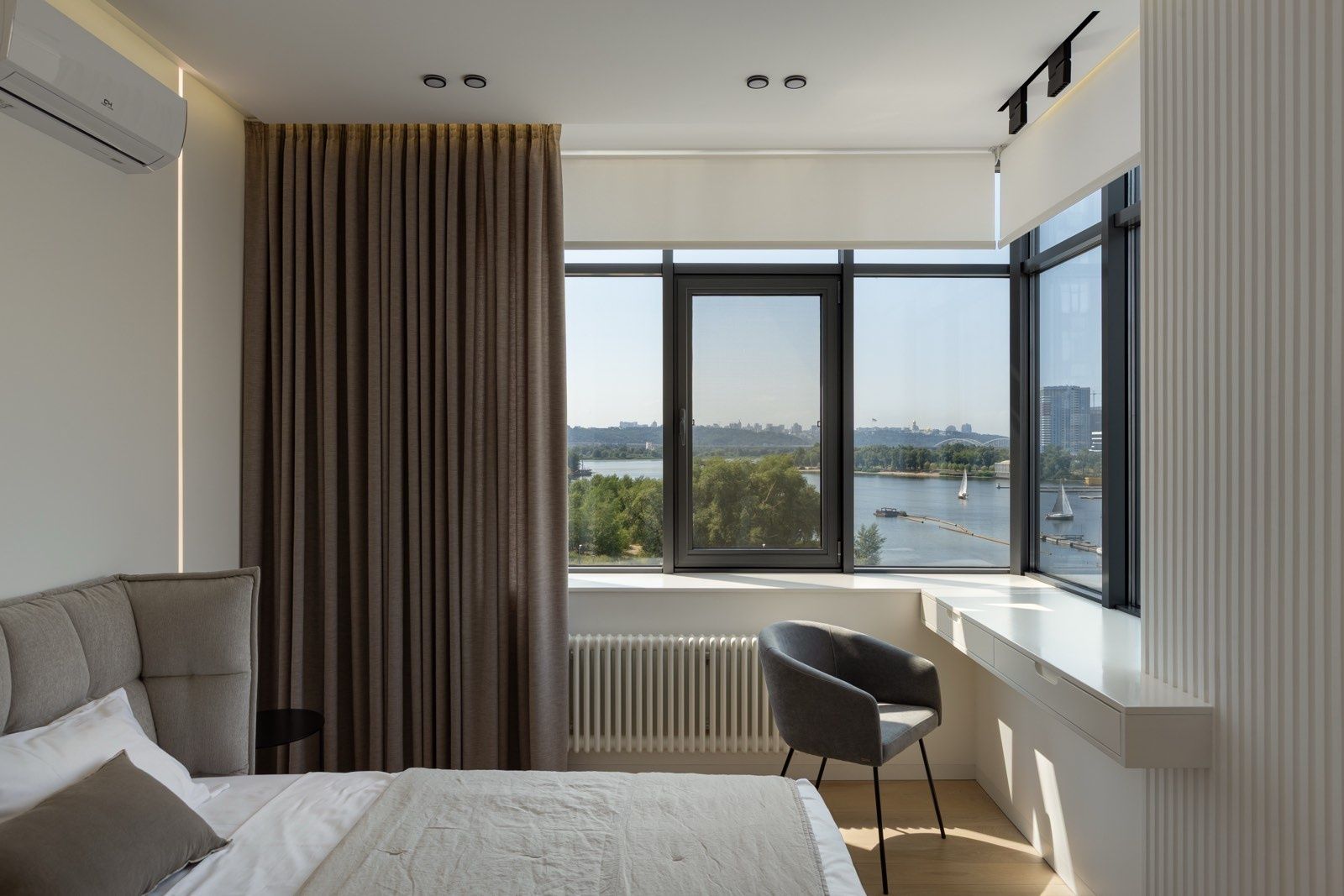 Це виняткове житло з видом на Дніпро, виконане за дизайнерським проєктом з використанням дорогих та якісних матеріалів.