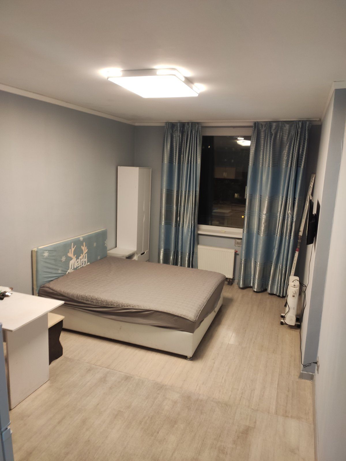 Квартира з євроремонтом, приємними кольорами в інтер’єрі, продуманим плануванням, ламінатом на підлозі, металопластиковими вікнами та великим ліжком.