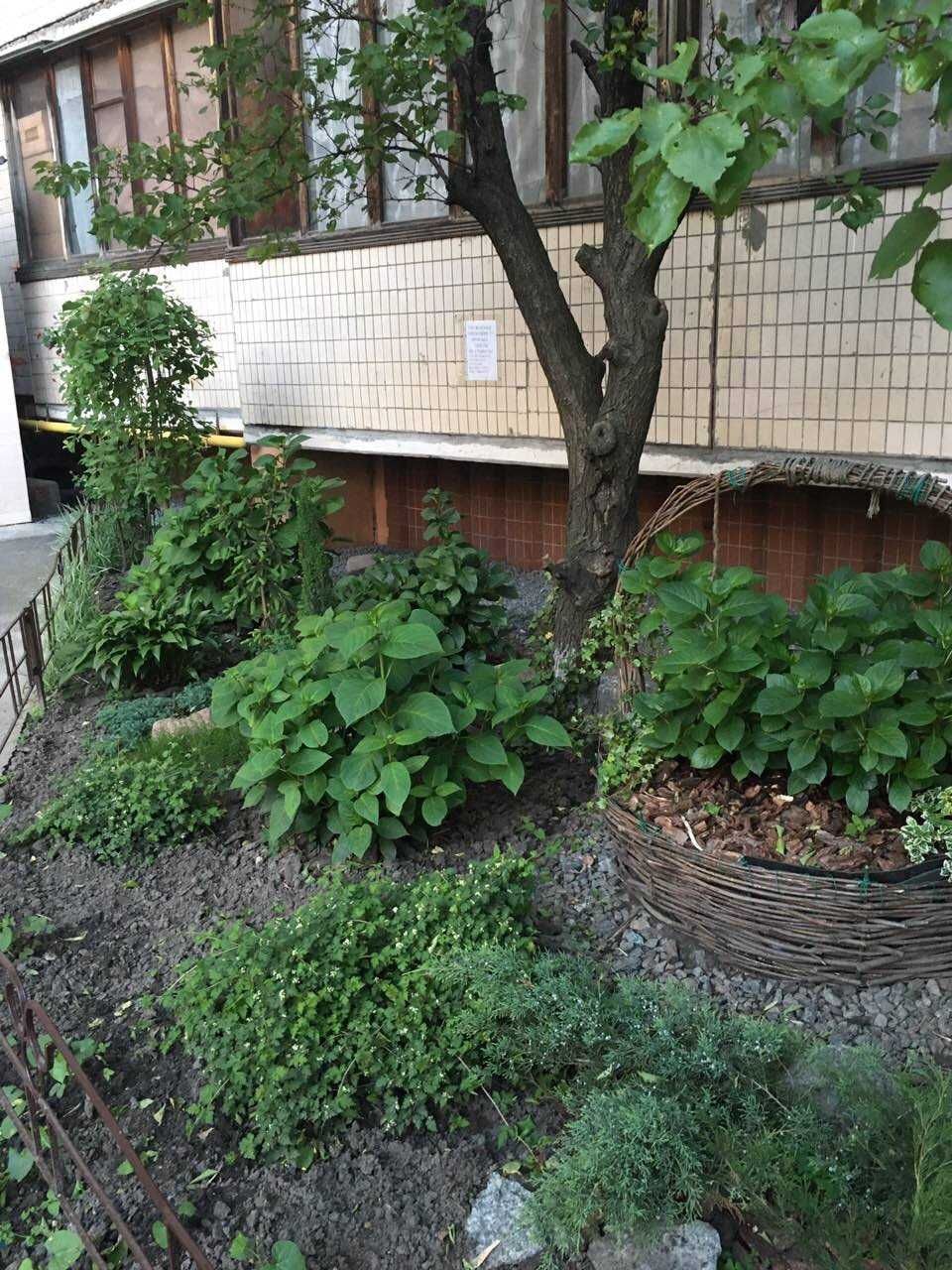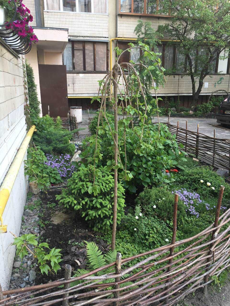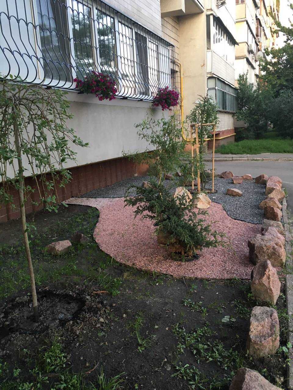 Особливість — зона під вікнами та балконом із ландшафтним дизайном: зелень, доглянутий простір, який створює атмосферу приватного двору навіть у багатоповерховому будинку.