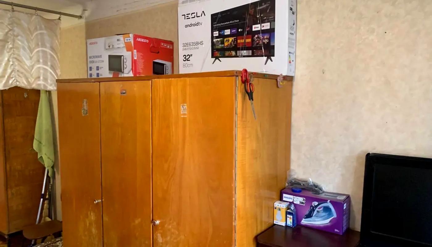 У кімнаті житловий стан, на підлозі — лінолеум, на стінах — шпалери. Потребує косметичного оновлення, але вже придатна для проживання.
