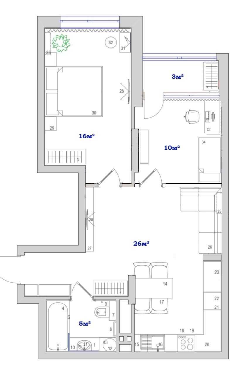 Дитяча або кабінет (10 м²) відділена скляною перегородкою з датською фурнітурою, має робочий стіл, шафи, комод і розкладний диван на двох дорослих.