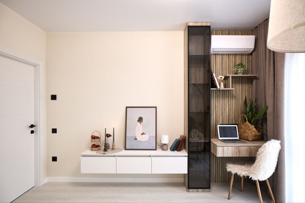 Житло вирізняється високою функціональністю: тепла підлога облаштована по всій квартирі, зроблена велика кількість розеток, а кожен квадратний метр задіяний максимально ефективно.