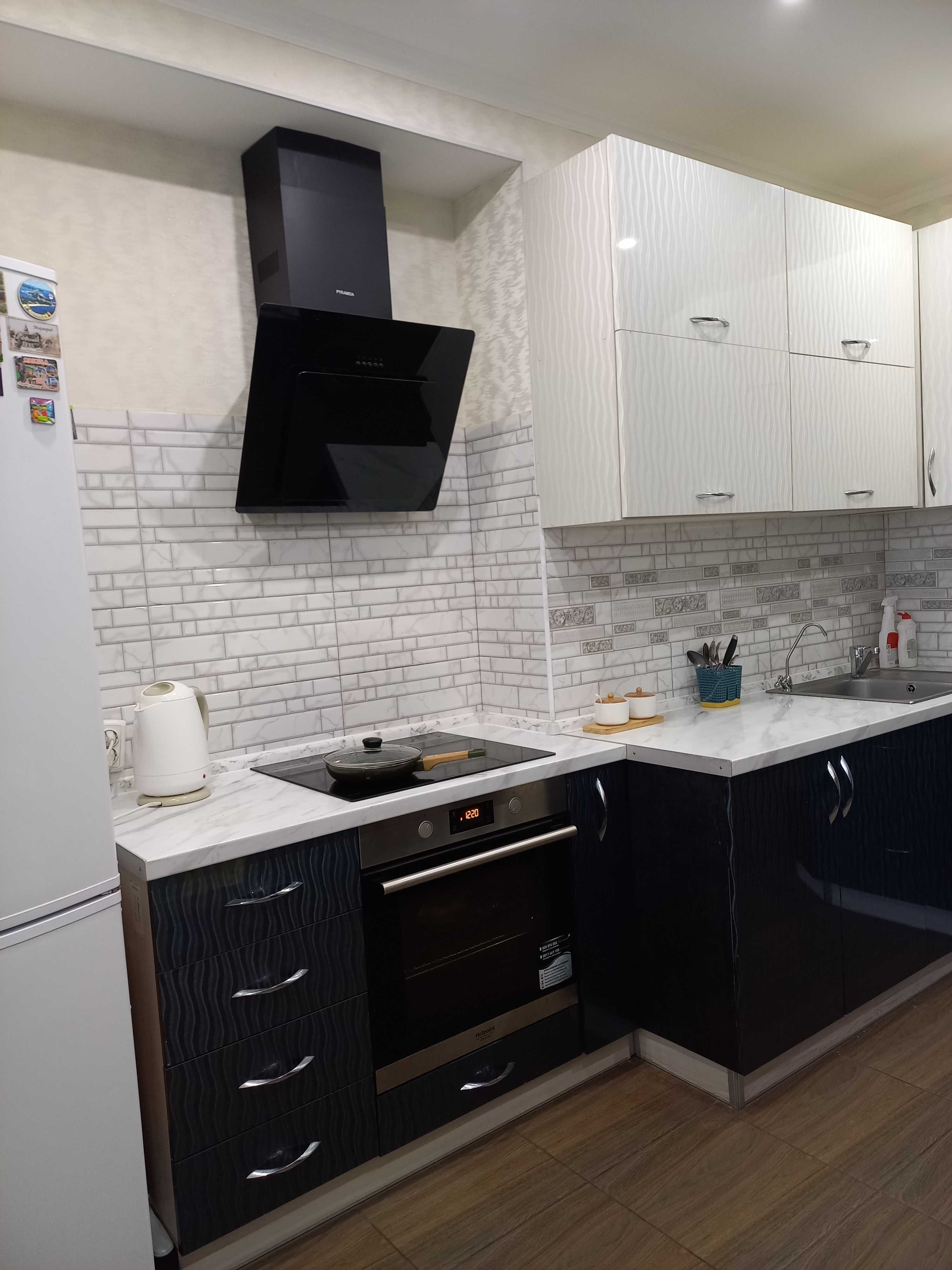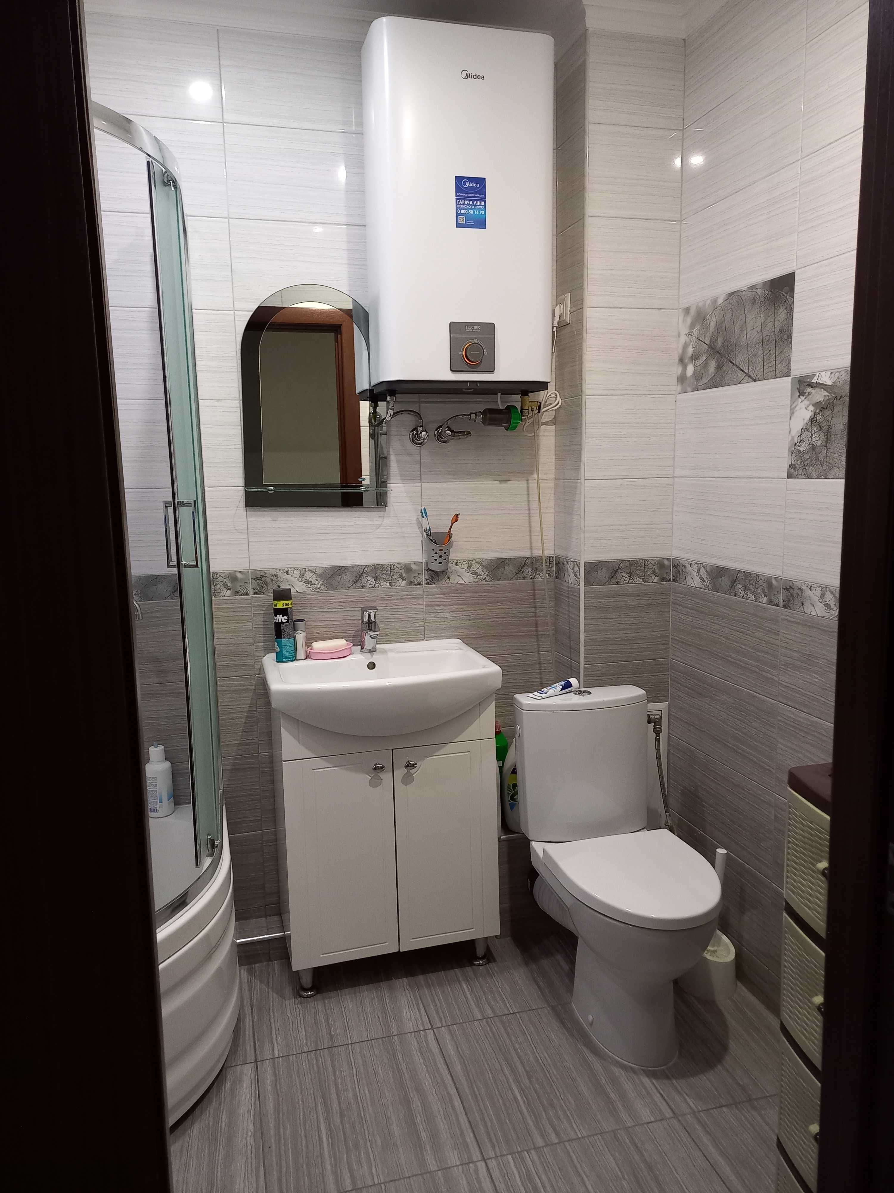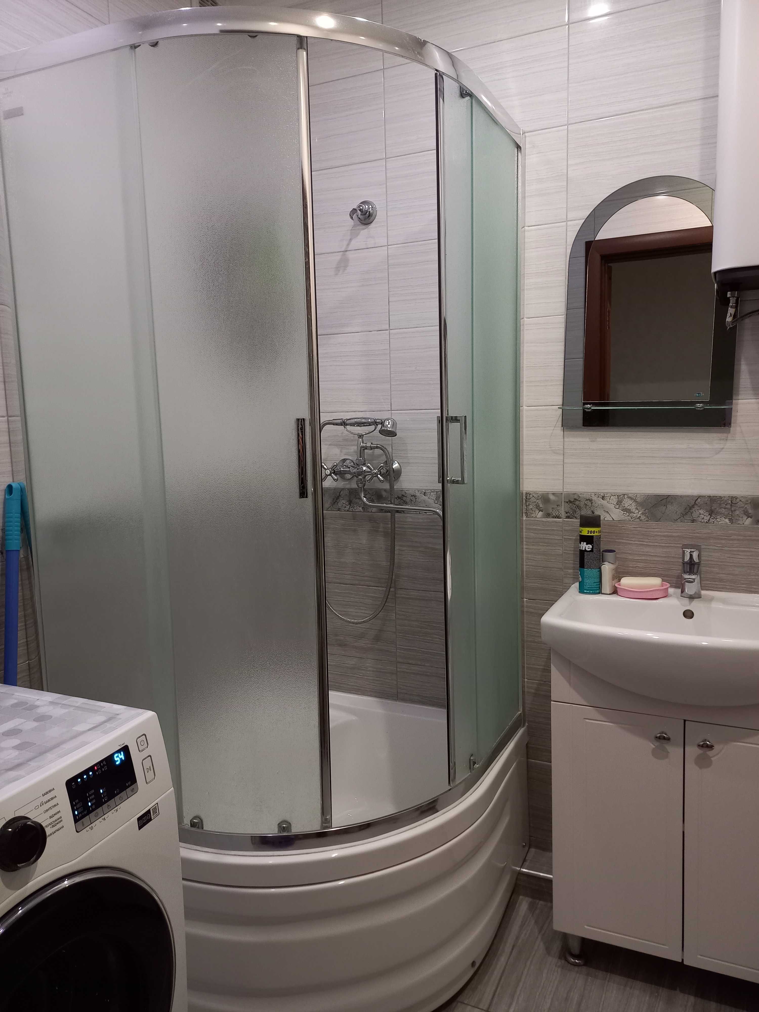 Квартира має функціональне планування: простора кухня, суміжний санвузол, якісний ремонт у спокійних тонах — усе готове для комфортного життя.