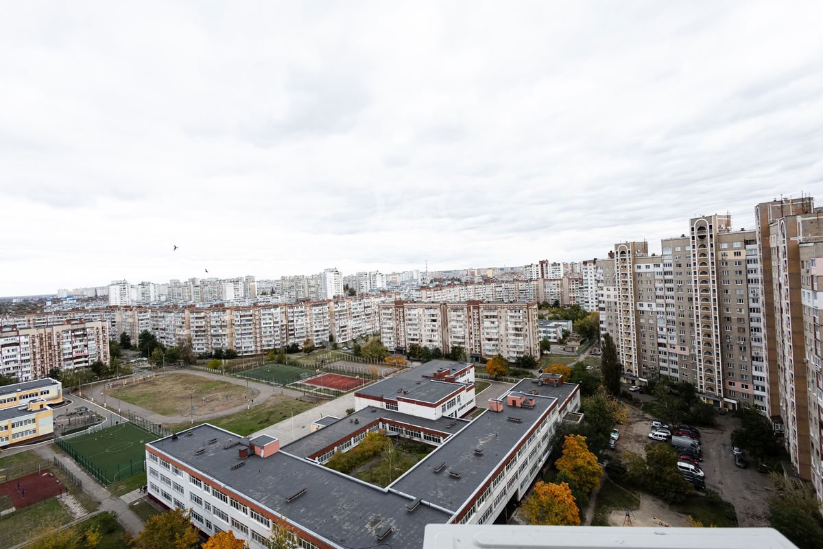 Продається 3-кімнатна квартира за адресою: проспект Червоної Калини, 1а. Оселя розташована на 17 поверсі 18-поверхового будинку серії КТ.